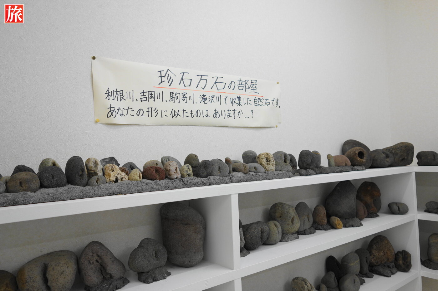 珍石万石が棚に飾られています。池田満寿夫(いけだ ますお)の部屋付近の様子です。