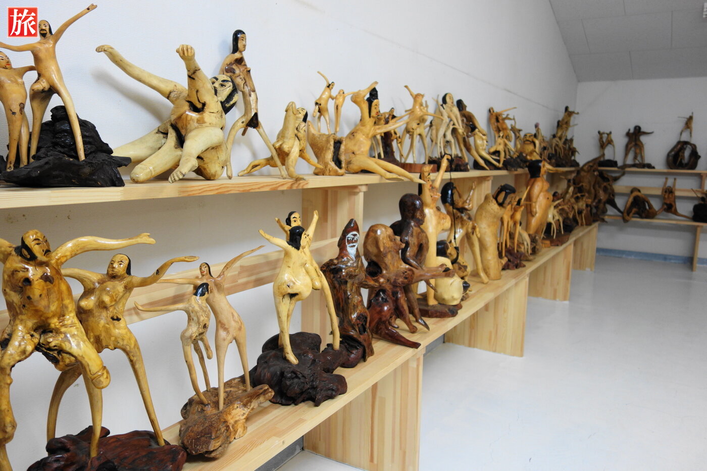 自然木アートの説明。男女絡み合い、自然木アートの展示物です。所狭しと自然木アートが展示されています。