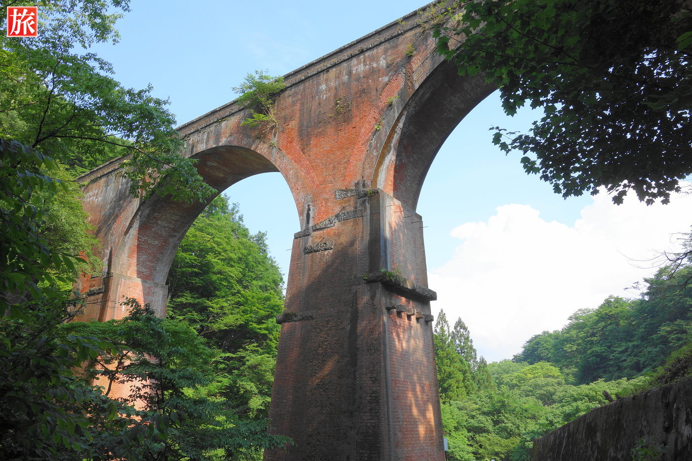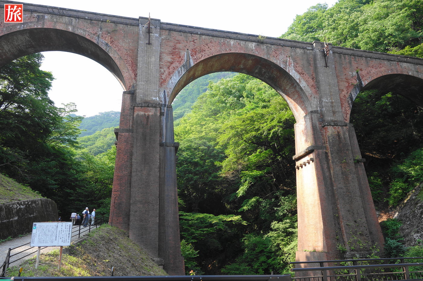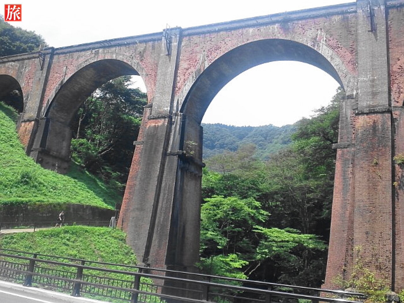 1892年完成した芸術と技術が融合した美しいレンガのアーチ橋です。この形を採用したのは日本ではめがね橋が最初で、煉瓦アーチ橋で径間数4、長さ91m、高さ31mで日本最大の煉瓦づくりアーチ橋です。使用されたレンガは200万個を超えるそうです。