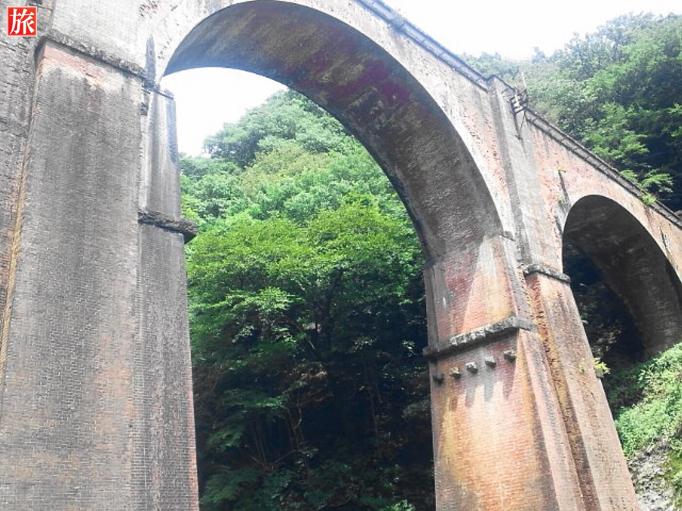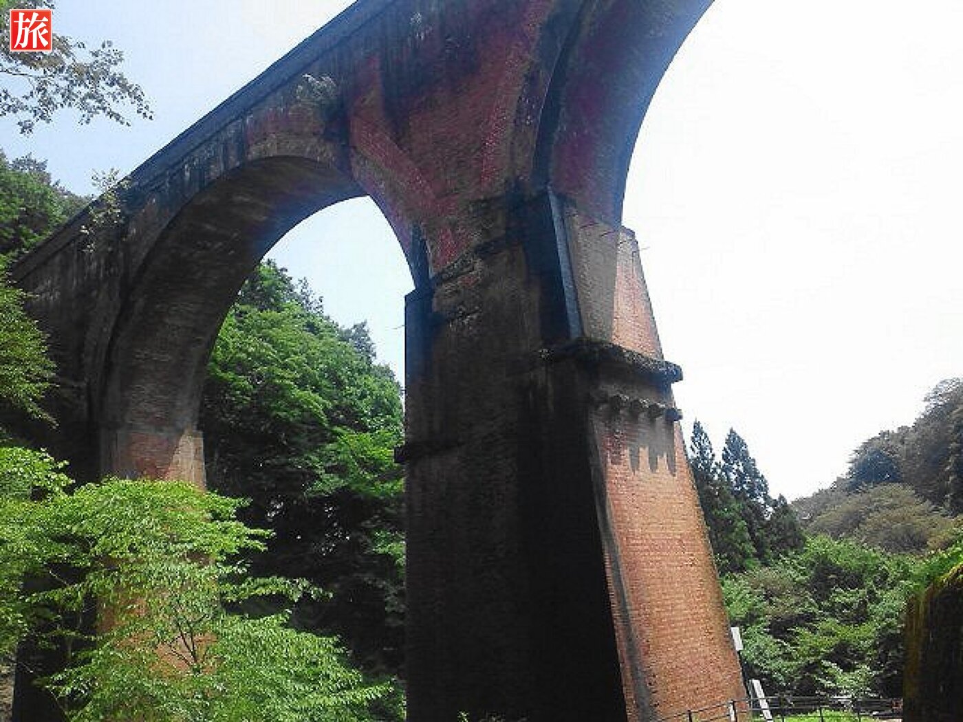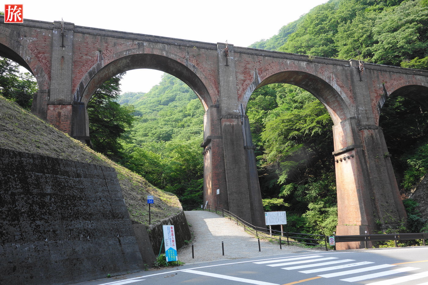 1892年完成した芸術と技術が融合した美しいレンガのアーチ橋です。この形を採用したのは日本ではめがね橋が最初で、煉瓦アーチ橋で径間数4、長さ91m、高さ31mで日本最大の煉瓦づくりアーチ橋です。使用されたレンガは200万個を超えるそうです。