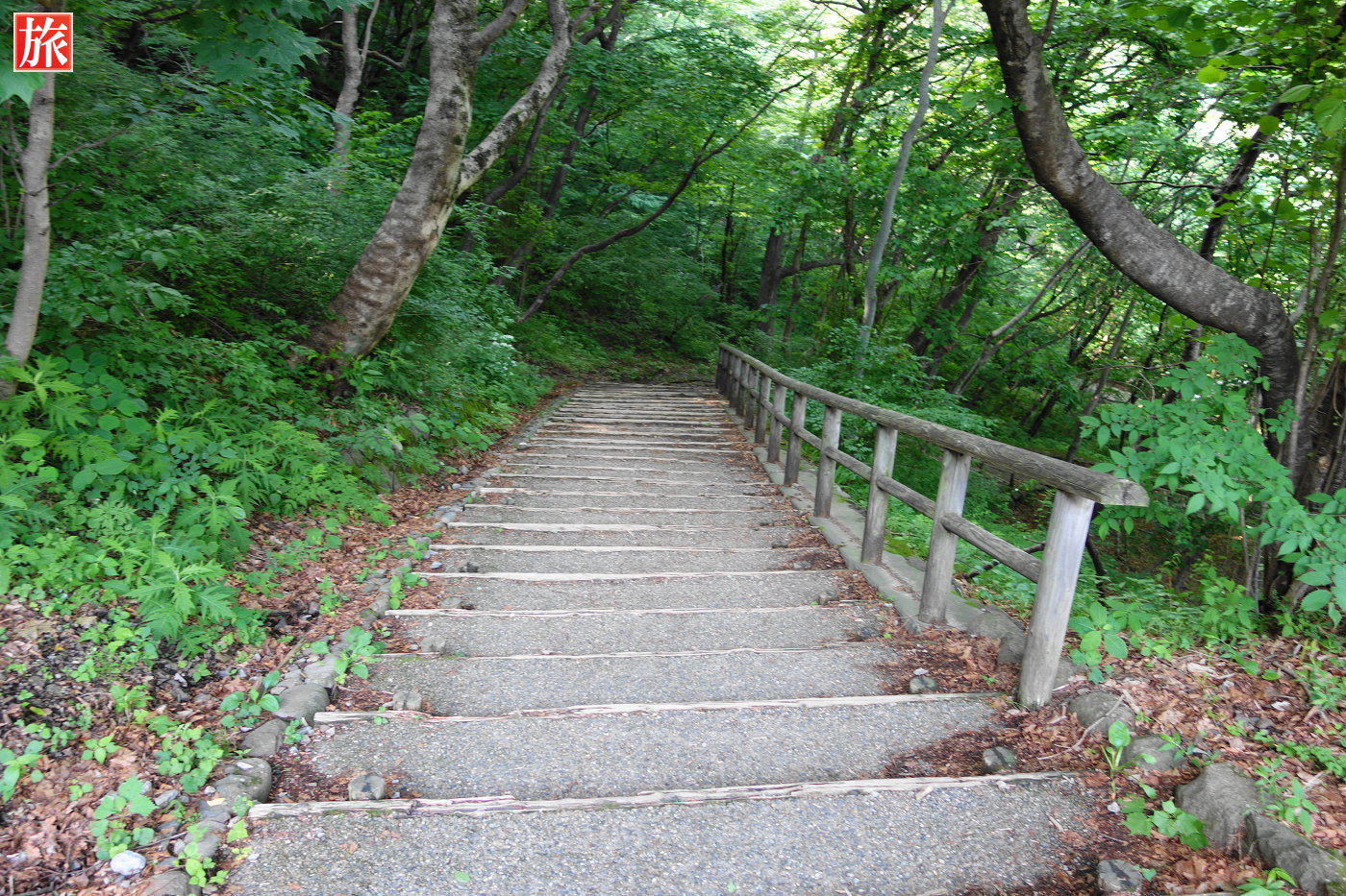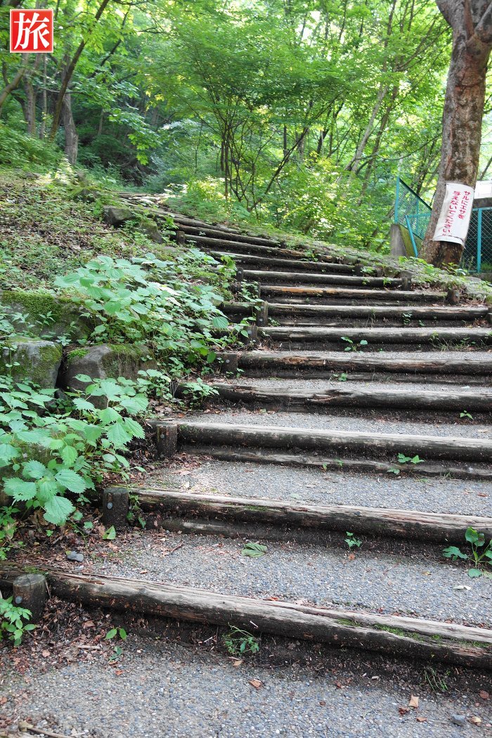 少し進むと左手に、アプトの道[遊歩道]へ通じる階段があります。階段を上っていきます。