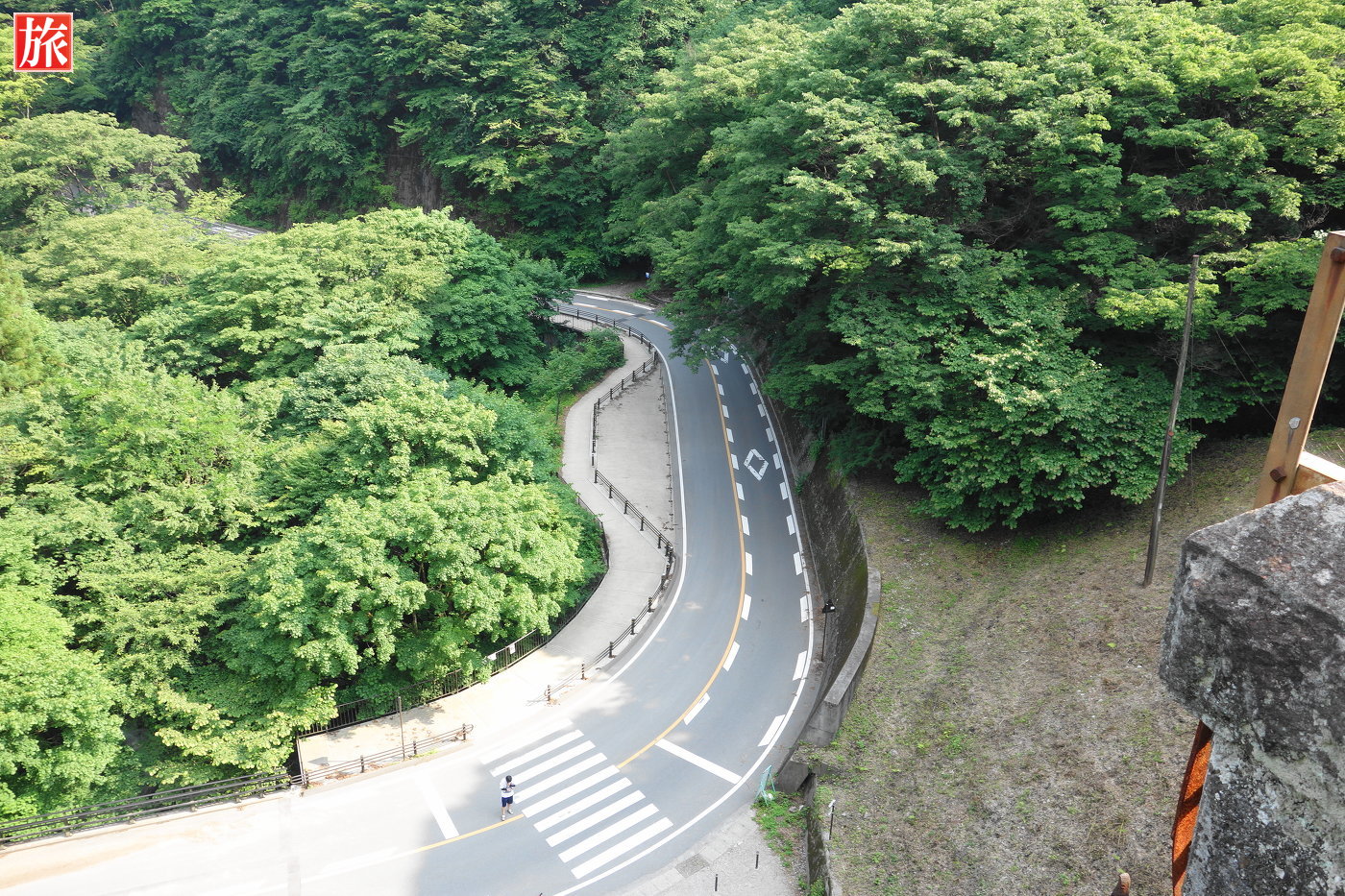 旧中山道沿い碓氷峠方向に進むと「めがね橋」が右手に見えてきました。どーんと構えた「めがね橋」。橋の上に通じる道です。一般車は通れません。
