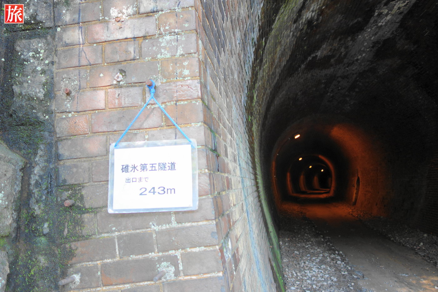 横川駅方向のトンネル(第五号トンネル)です。243mあります。トンネル内の様子。