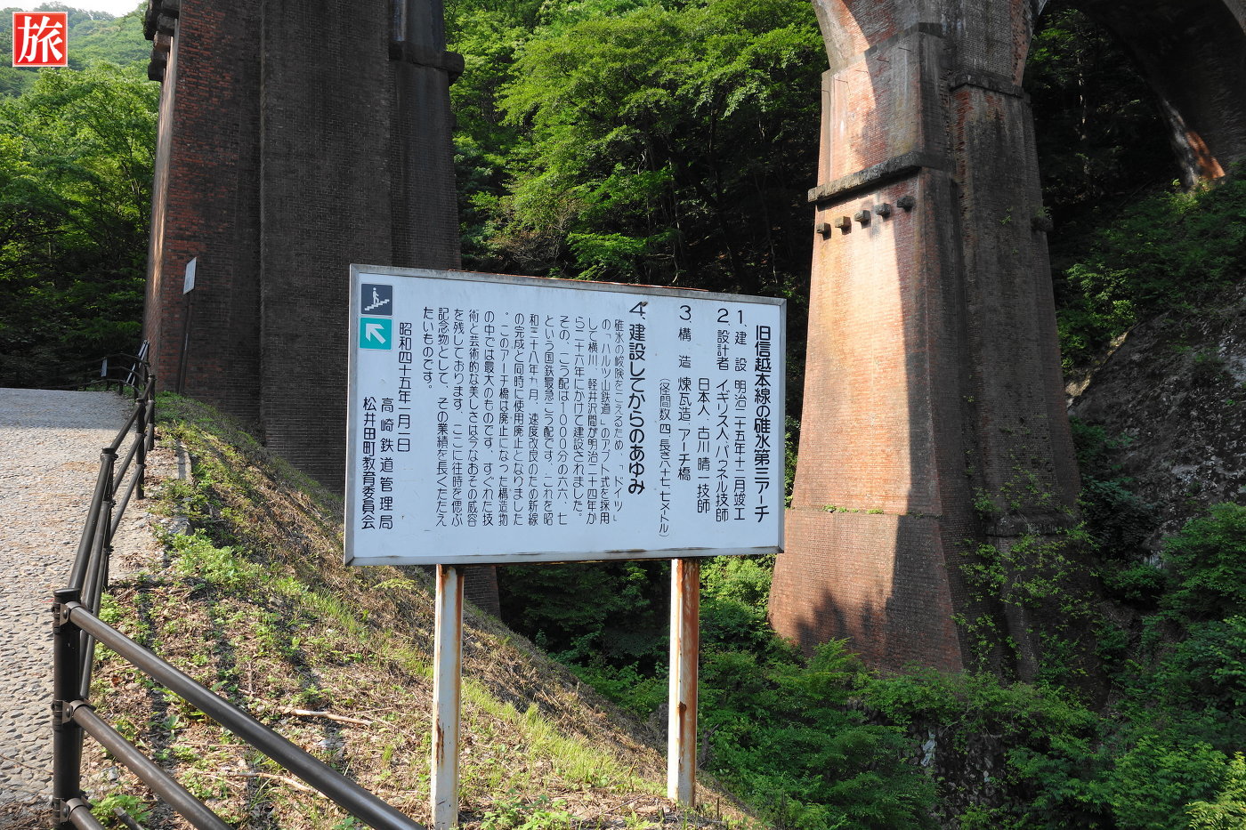 碓氷川に架かる煉瓦造りの4連アーチ橋で、碓氷峠の代表的な建造物。現存する煉瓦造りの橋の中では国内最大規模であり、1993年には「碓氷峠鉄道施設」として、他の4つの橋梁等とともに日本で初めて重要文化財に指定。