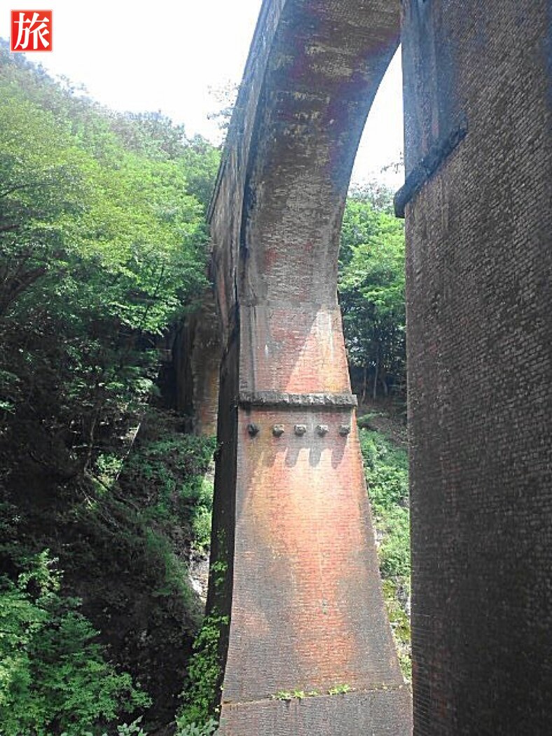 アプト式鉄道が廃止されるまで使用された橋です。すべてが煉瓦造りで、国重要文化財に指定されています。