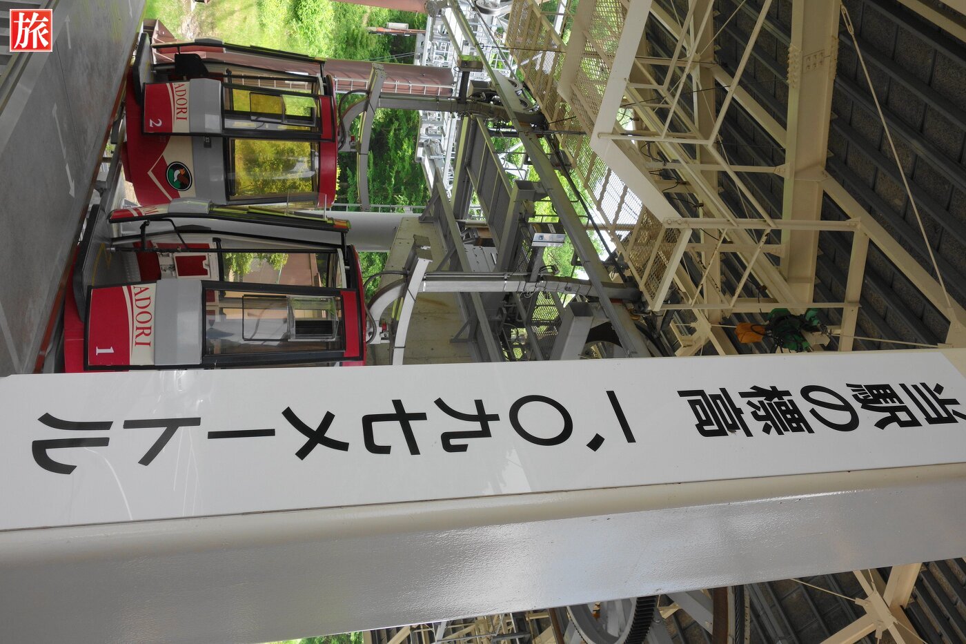下りはロープウェイの2号(山頂方向)に乗りました。山頂駅を眺める。上りとすれ違います。