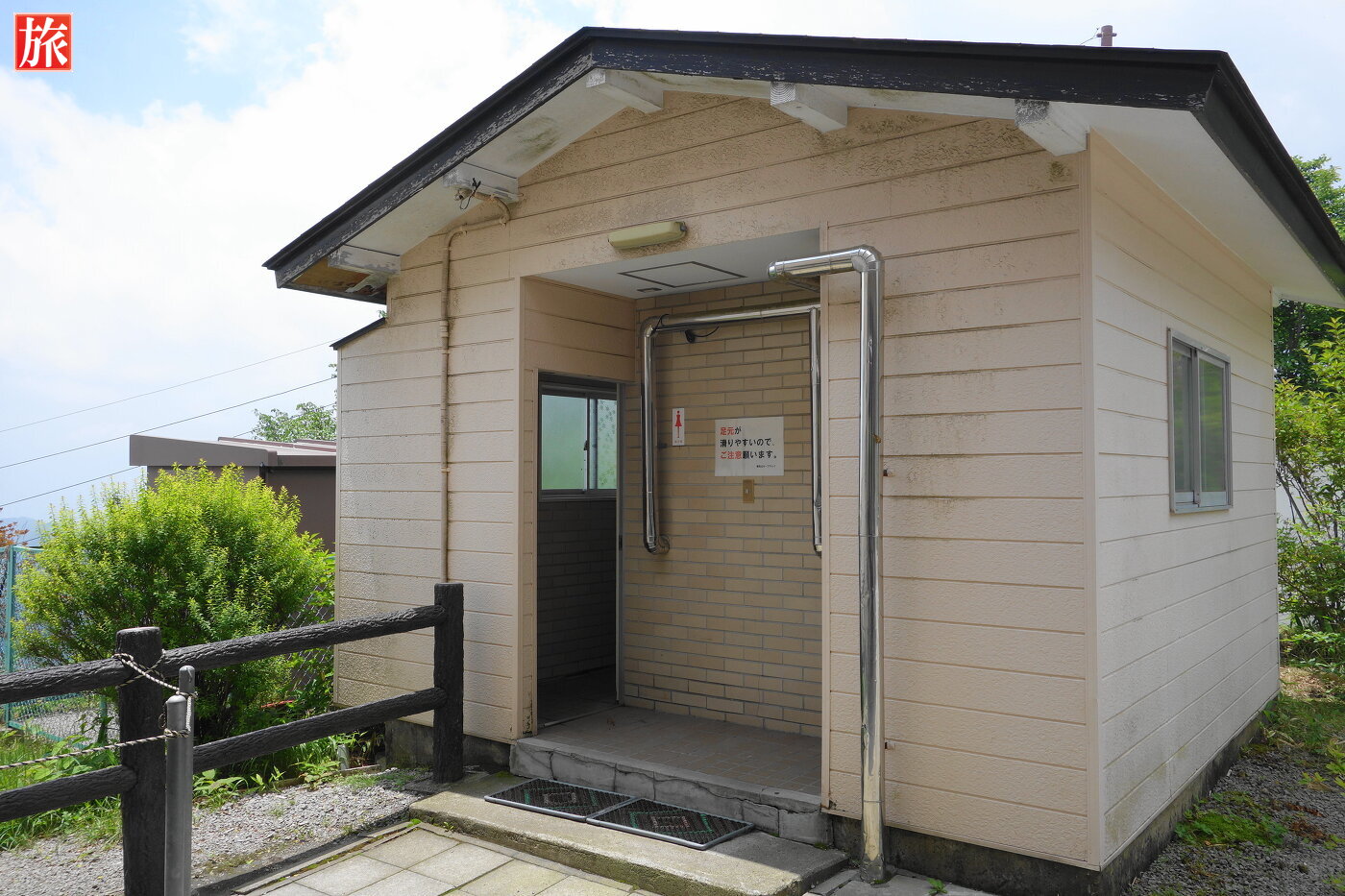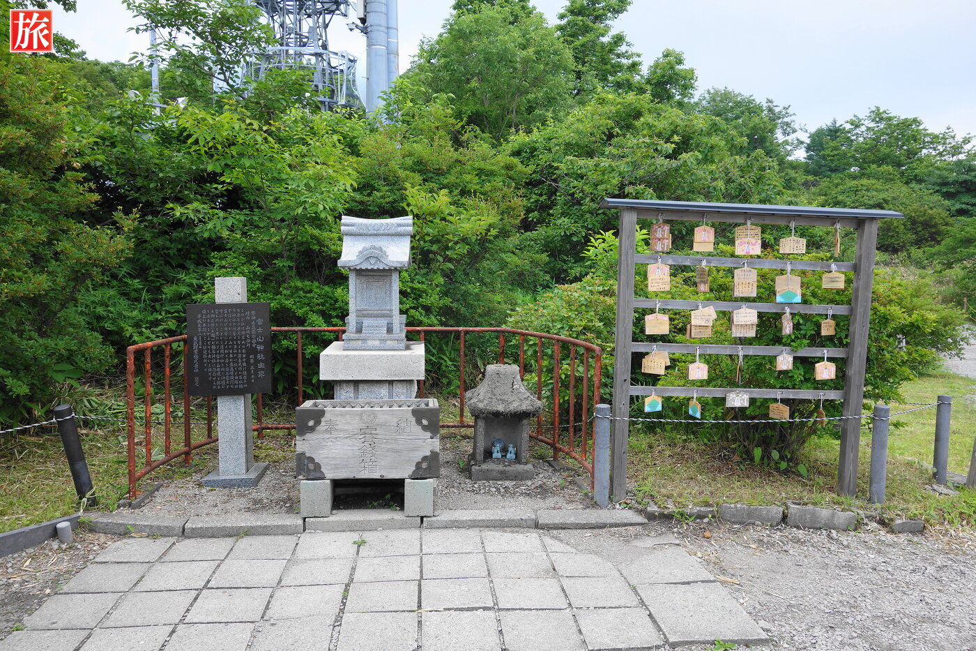 ロープウェイを降りて直ぐのところにトイレがあります。榛名富士山頂駅正面。富士山神社の遙拝所が鎮座しています。