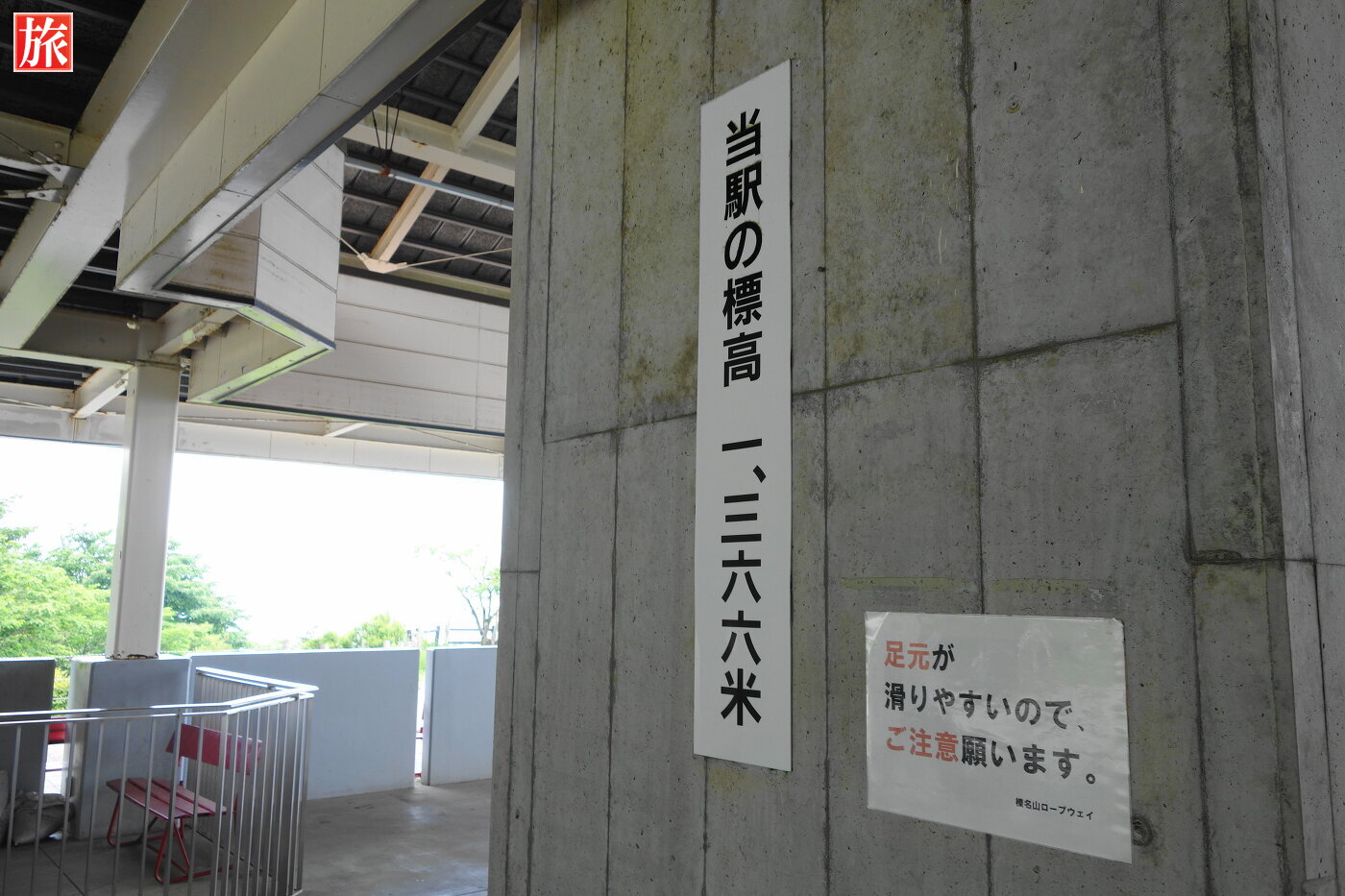 榛名湖を見下ろすロケーション抜群。榛名富士山頂駅に到着しました。榛名富士山頂駅の標高は1366メートルです。(駅間の高低差269m)