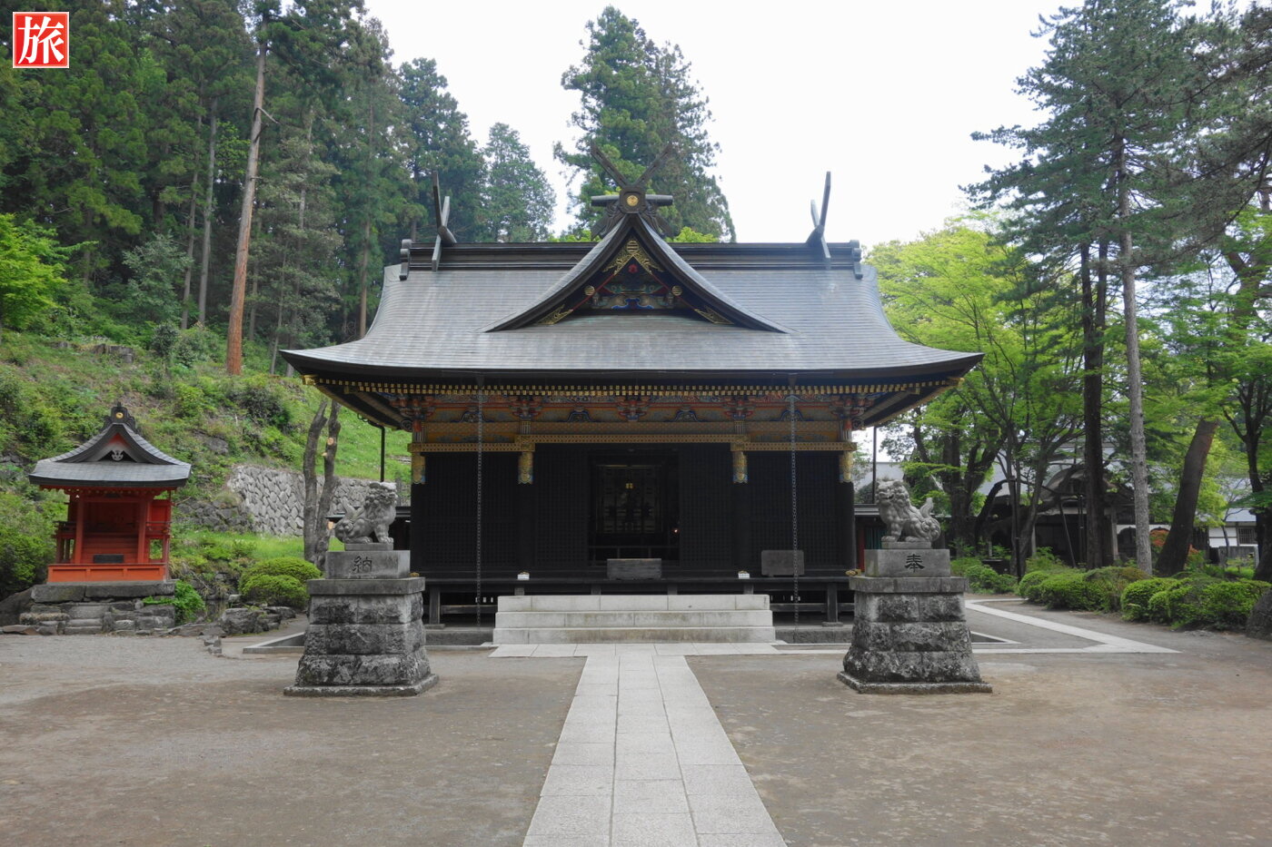 本社(本殿・弊殿・拝殿)は上毛の日光と言われるほど見事な彫刻があり、柱の金箔の龍や、羽目板壁の鳳凰は圧巻。また、借景庭園としても有名。