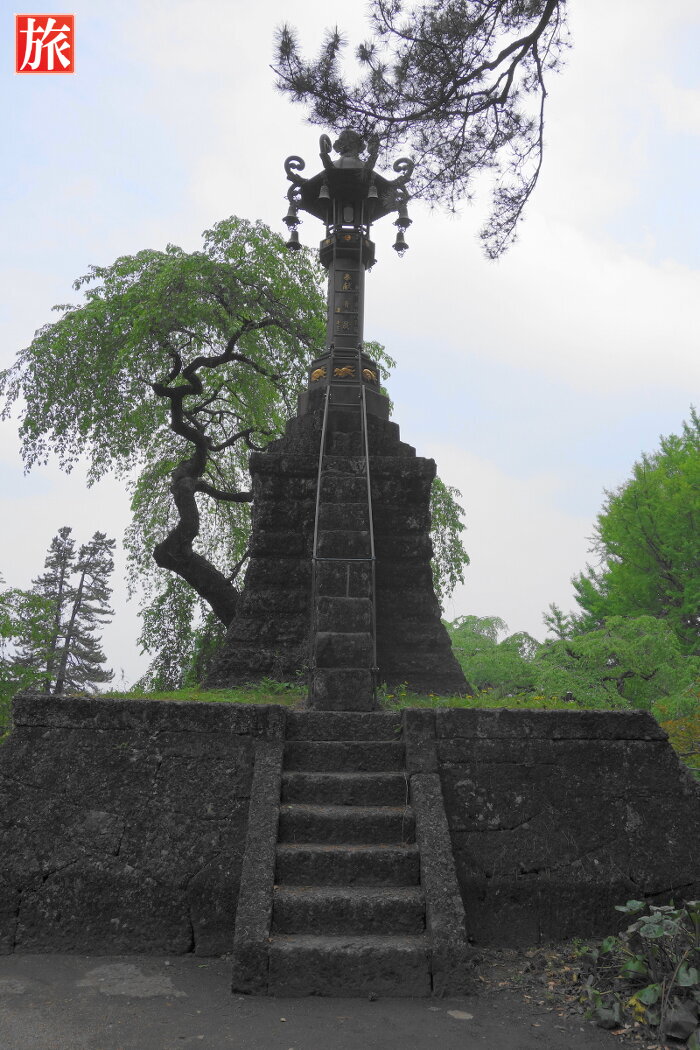 札所付近の風景。札所です。青銅鳥居の中に石階段・三角地帯のパワースポット、絵になります。