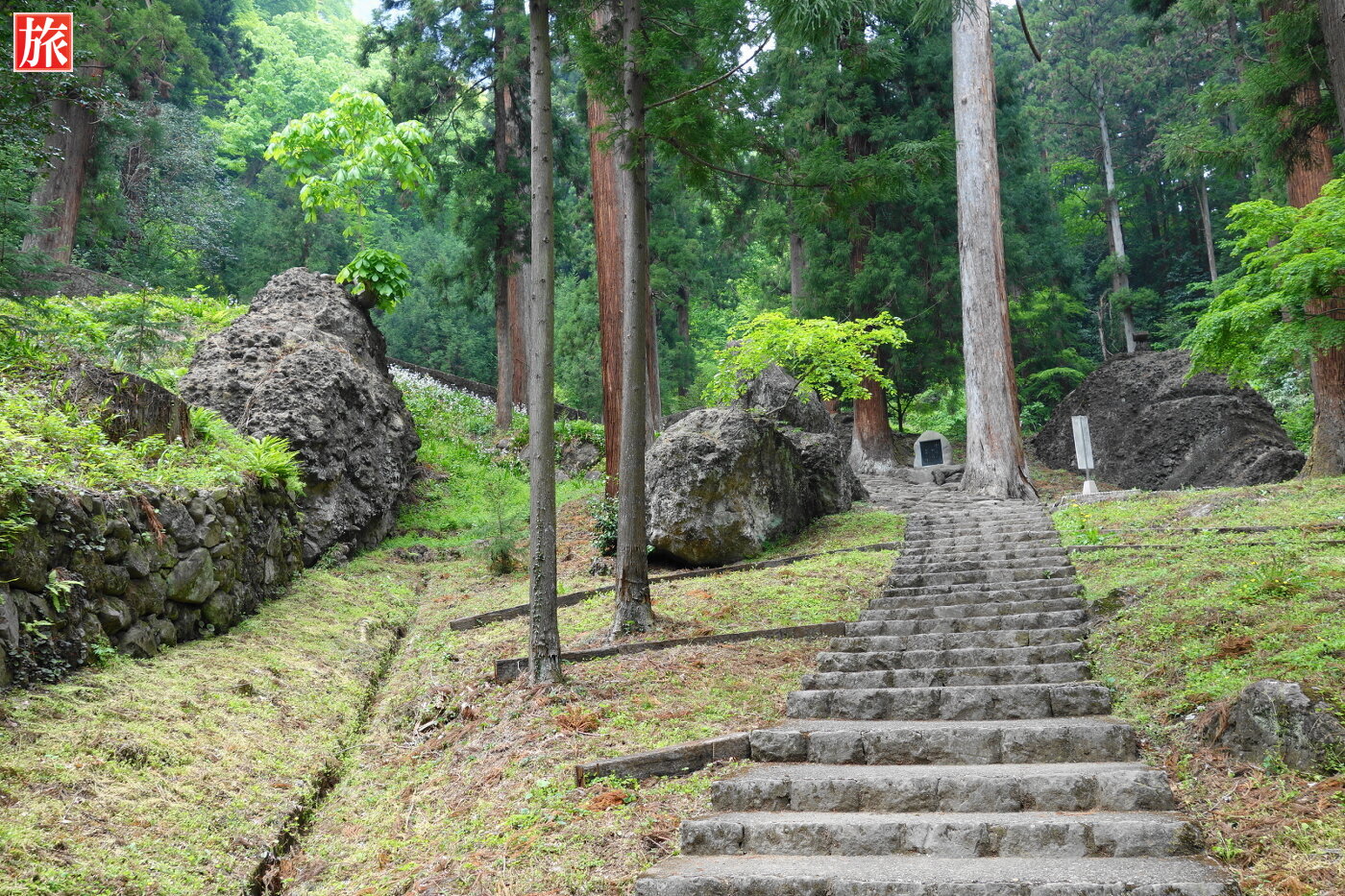 結構な勾配がある石階段で手すりもなく凸凹しているのでお年寄りにはキツイかもしれません。