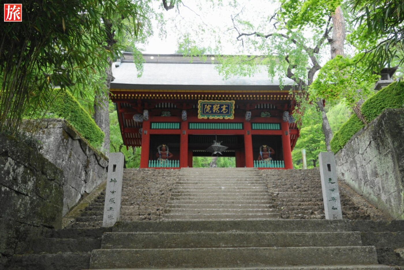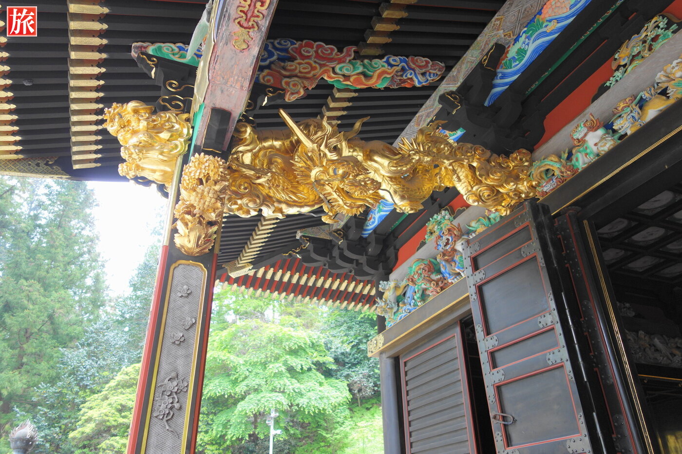 総門は関東一の壮大さを誇る、鮮やかな朱色の総門。高さ12メートル。切妻造りの八脚門。国指定重要文化財。
