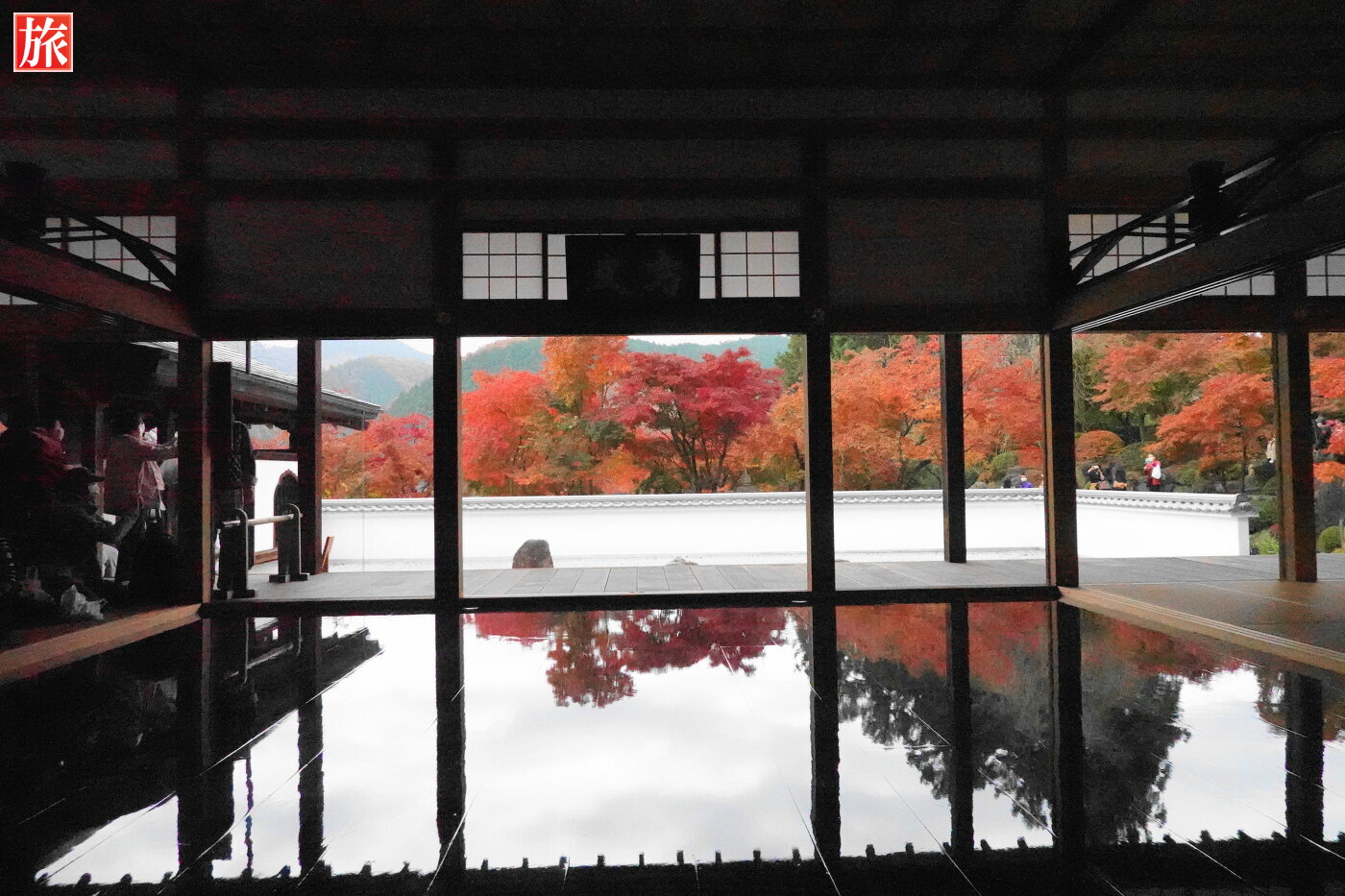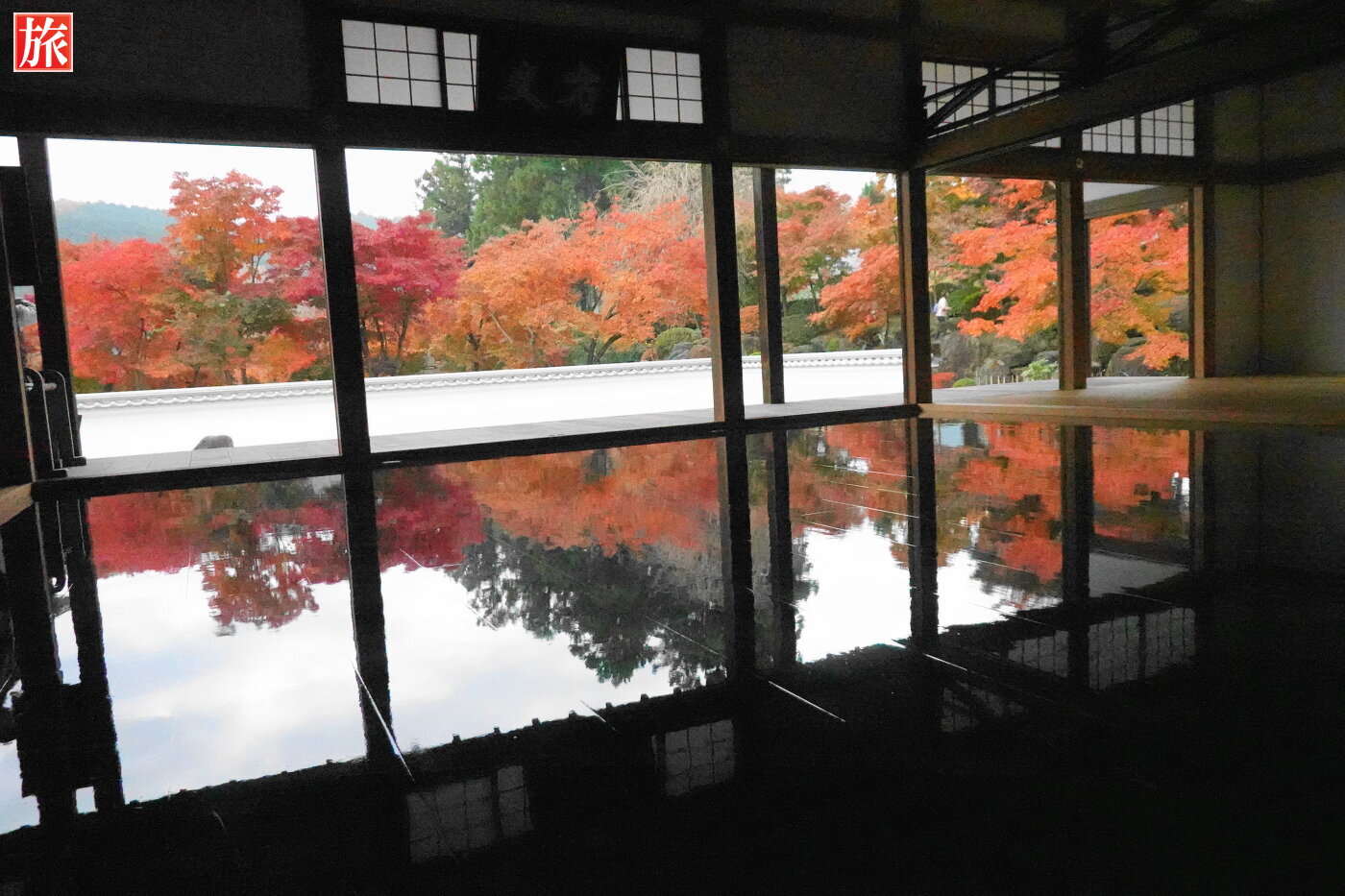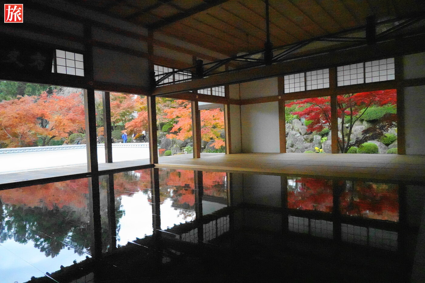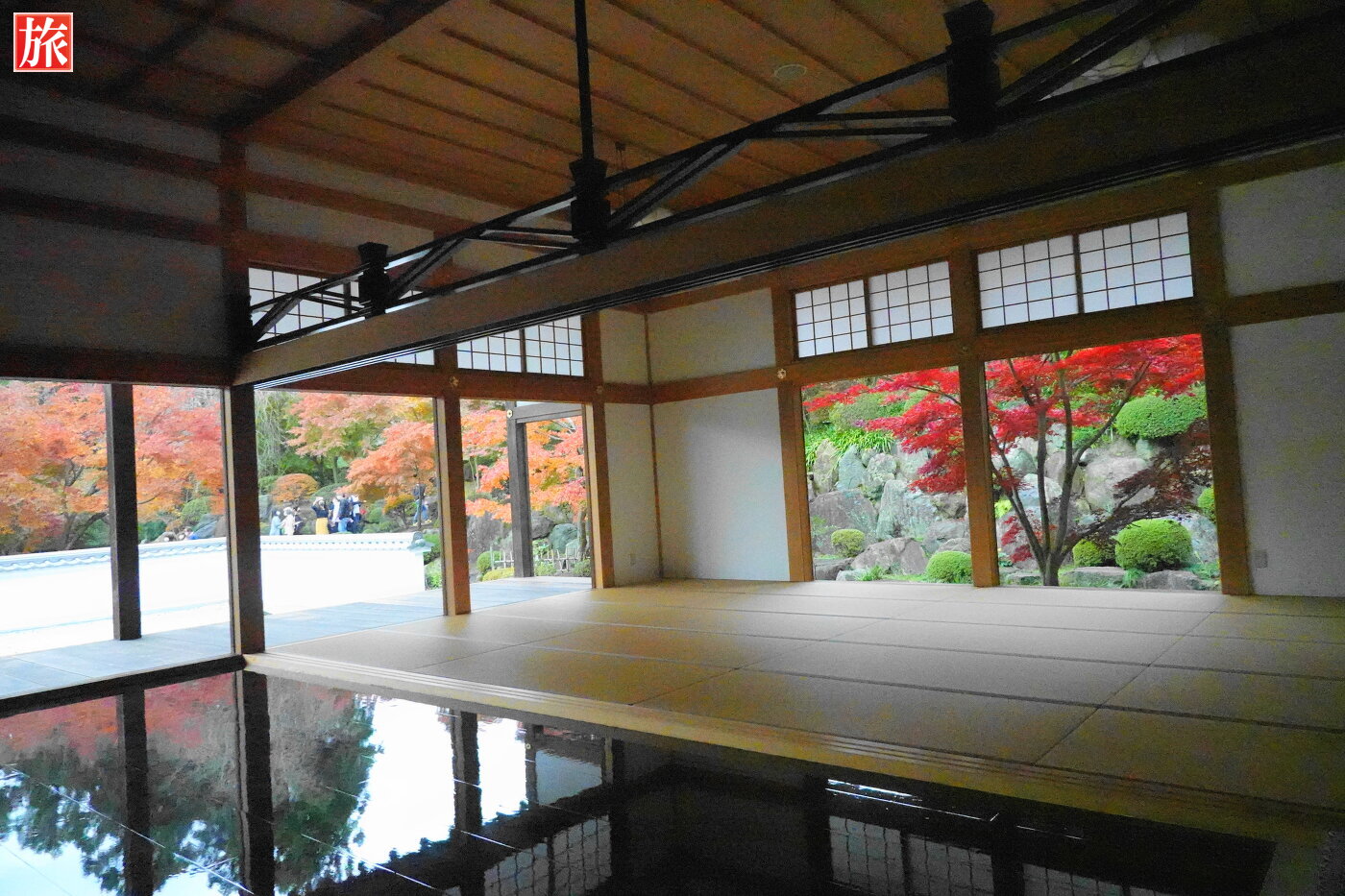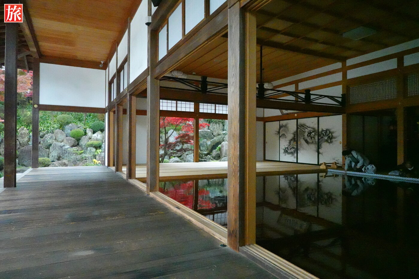 本堂の床もみじ。本堂拝観入口から本堂正面に移動しながら床もみじを楽しみました。