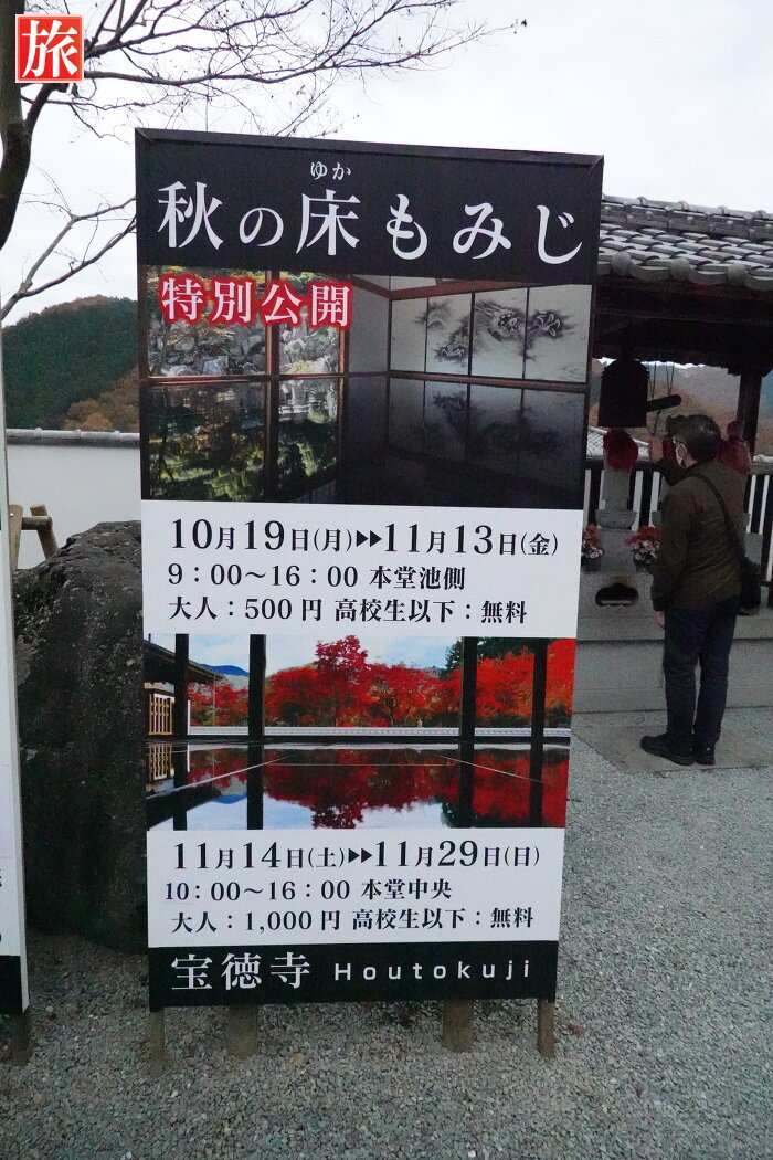 秋の床もみじ特別公開ということで、鑑賞に行ってきました。境内にある100本以上のもみじが紅葉し見頃を迎えていました。期間中の拝観料:1000円(高校生以下無料)駐車場:500円です。特別公開中なので第一、第二駐車場は満車で臨時駐車場からシャトルバスを利用しました。
