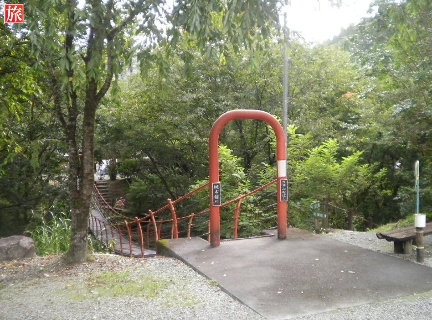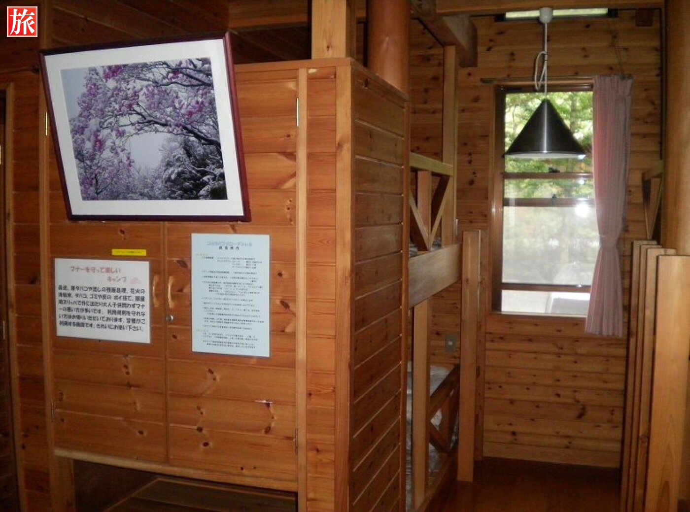 事務所内の風景、大体のものはここで揃う!?釣竿の貸し出しもあります、近くの渓流で釣りするのも良いでしょう。事務所の直ぐ前には吊り橋があります。