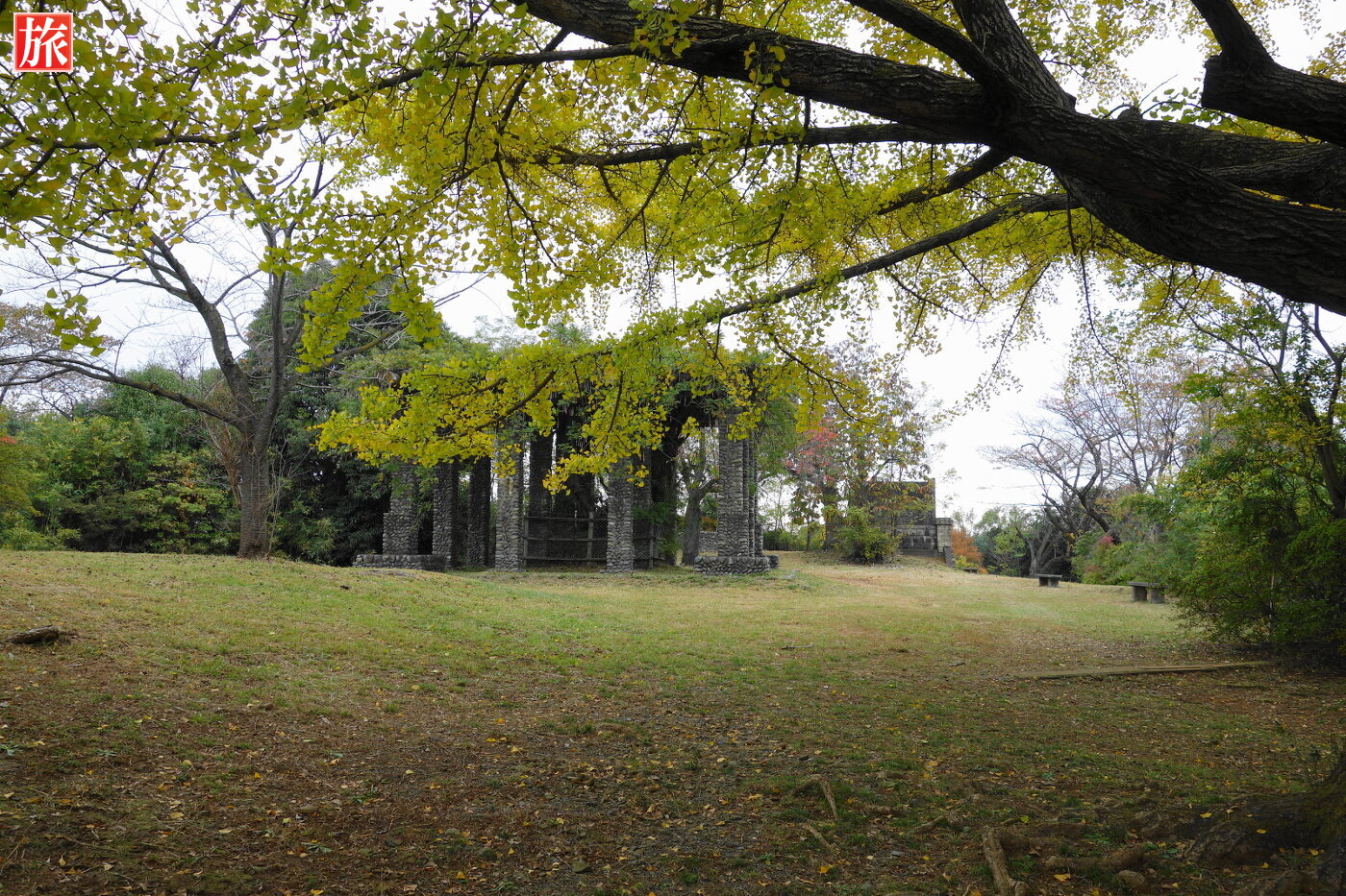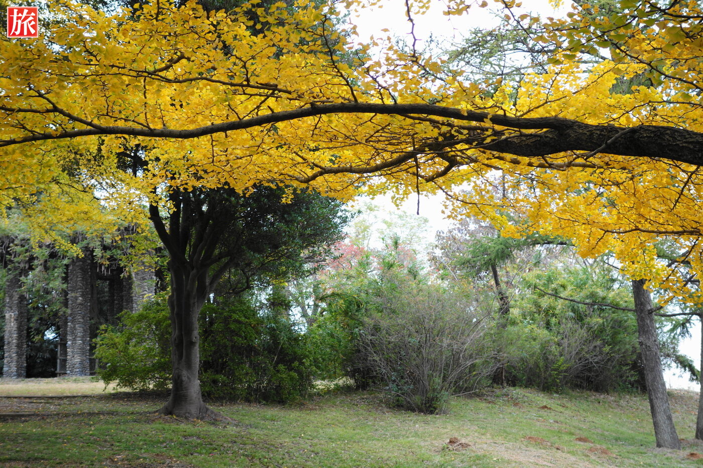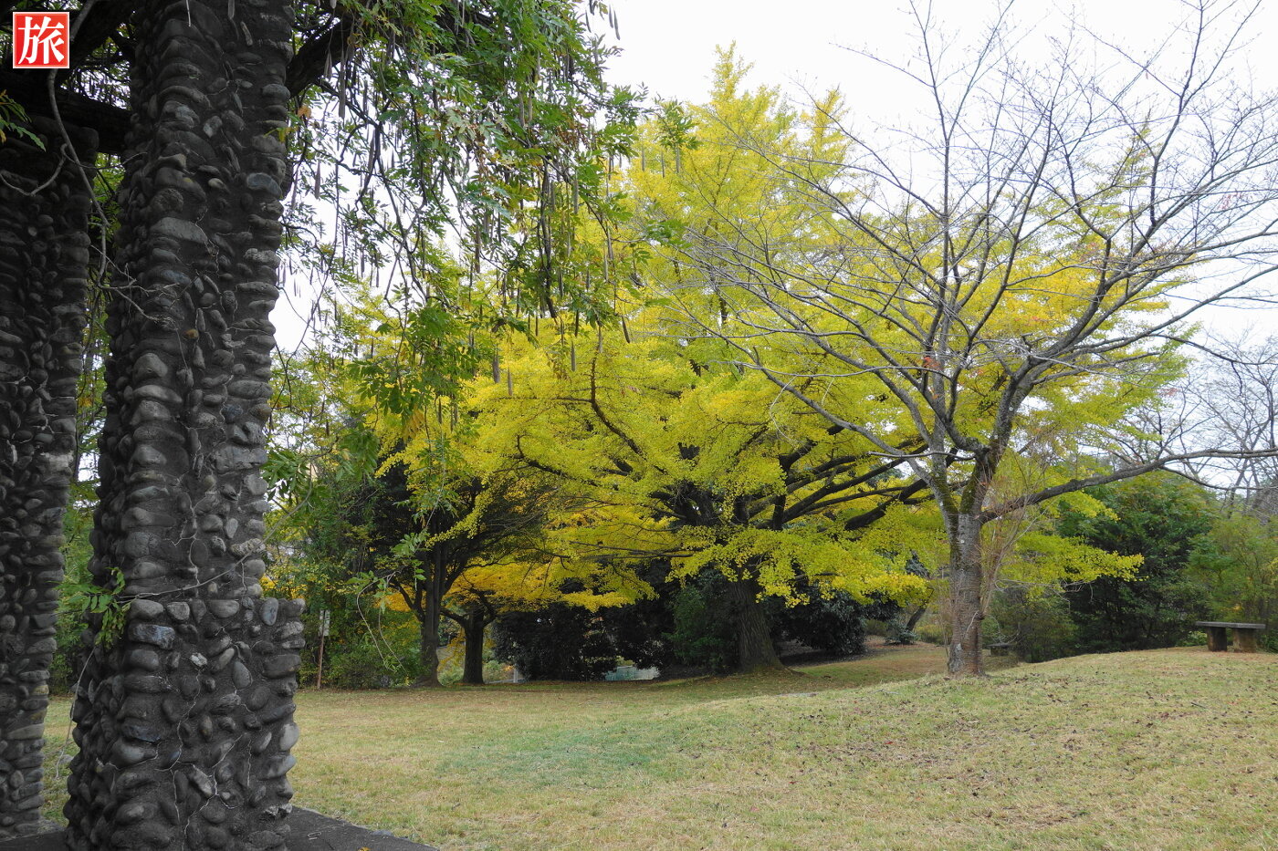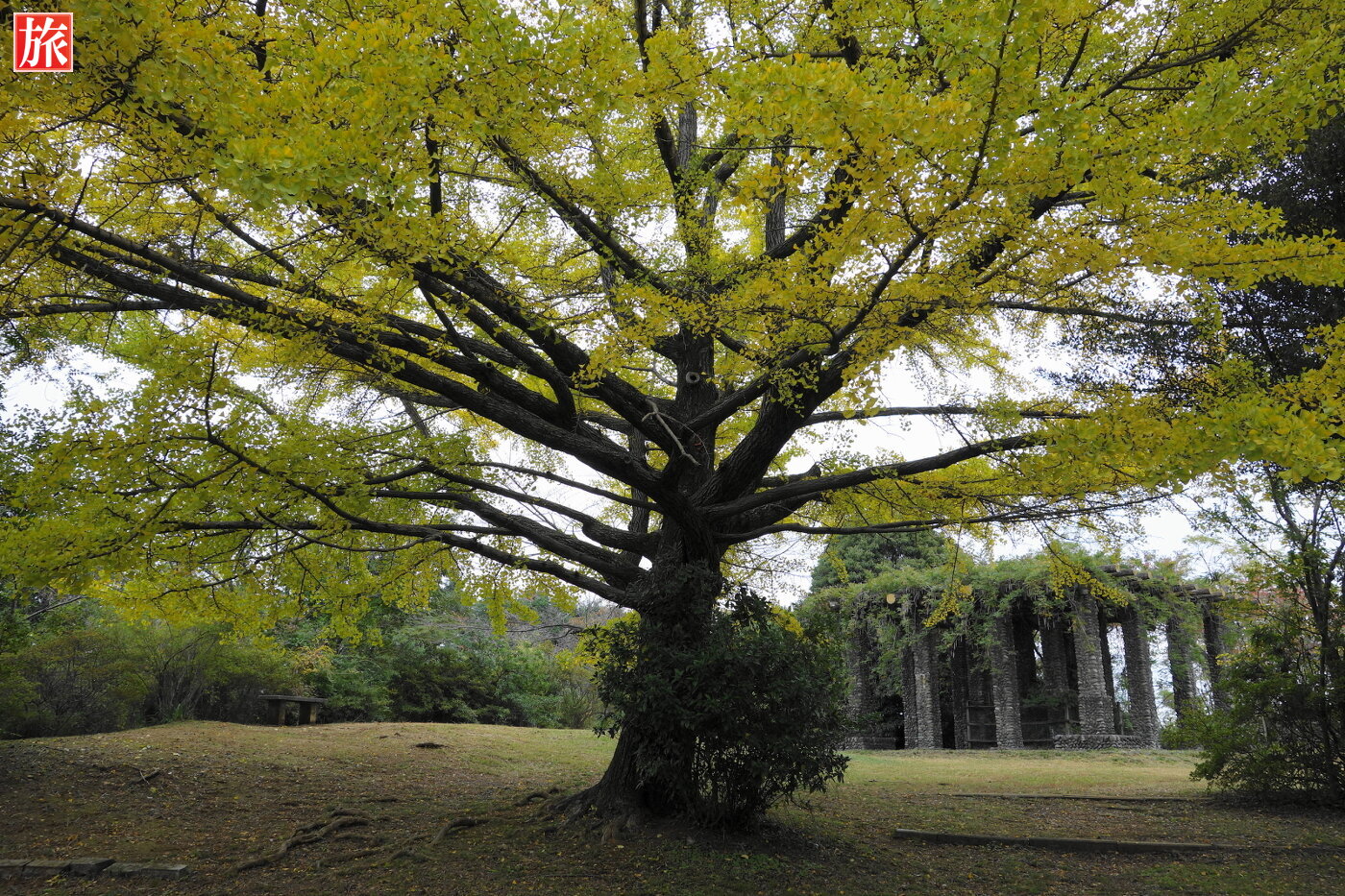 不明な構造物?なんでしょうか。いい味を出しています。雌のイチョウの全景。