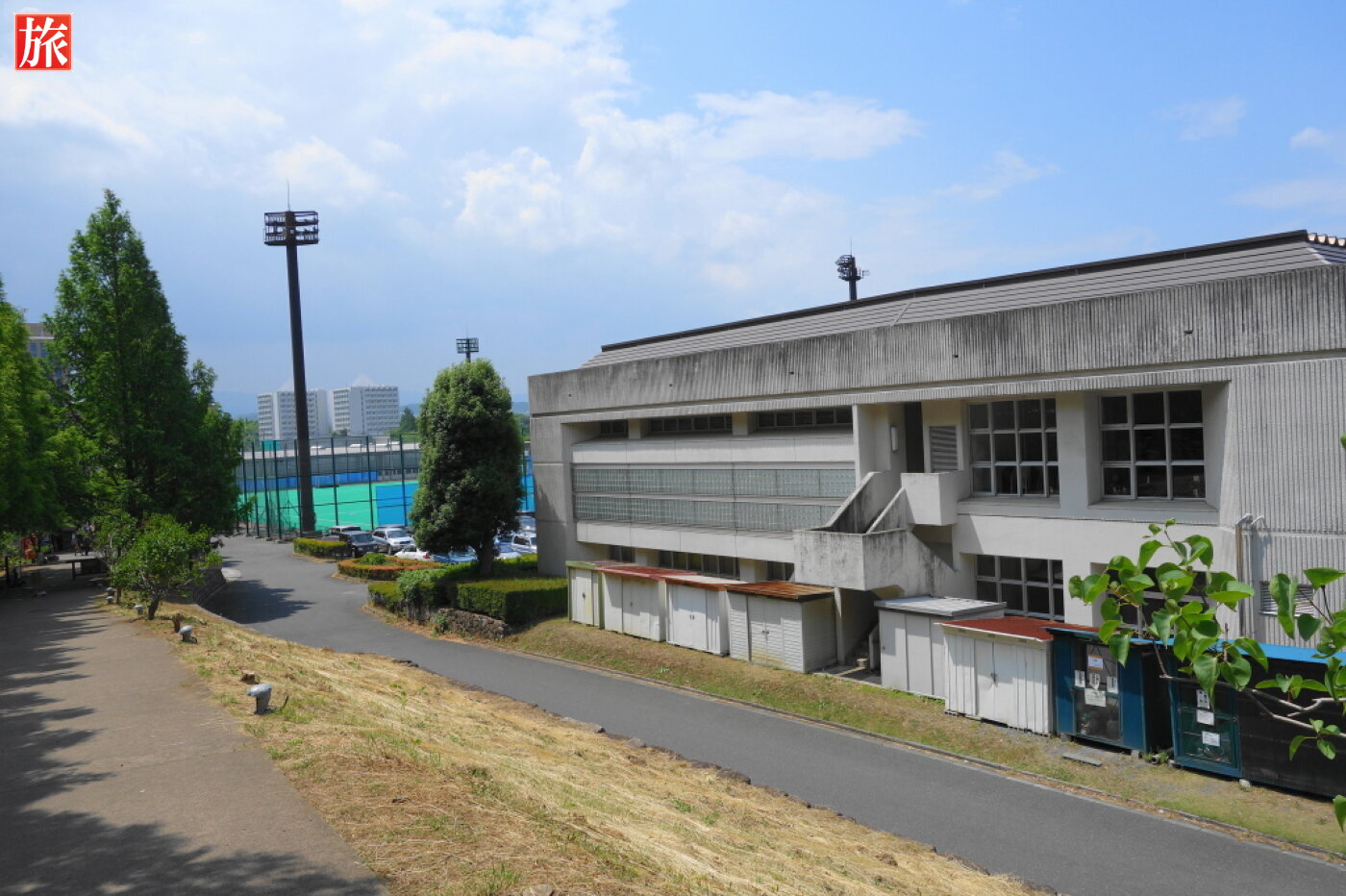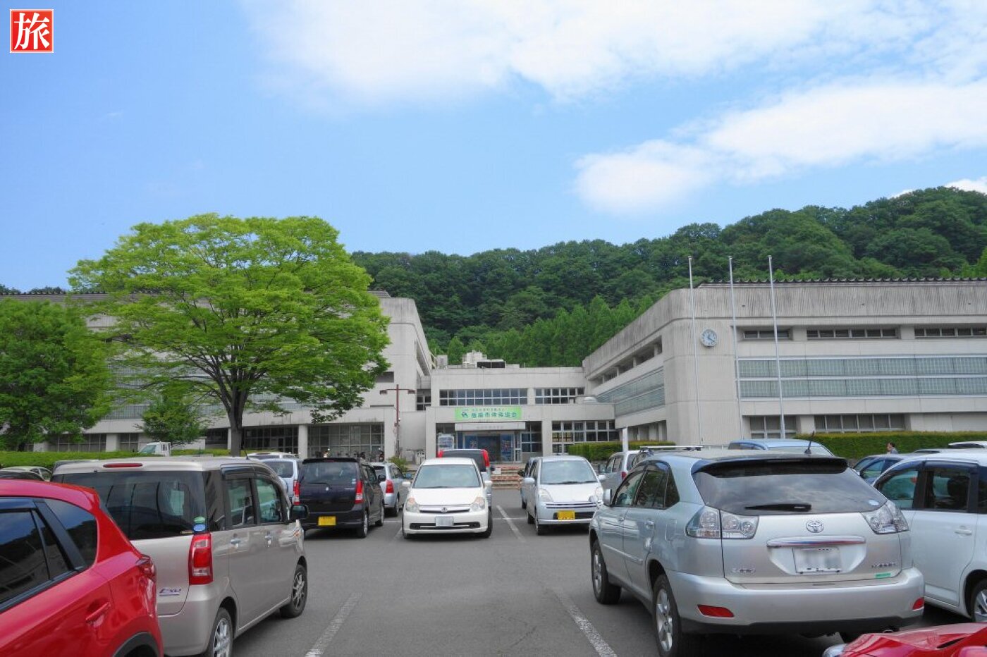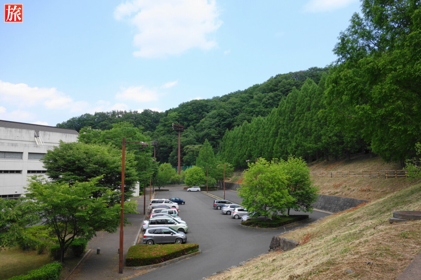 駐車場の様子です。道路を隔てた前には阿須運動公園があります。飯能市民体育館の駐車場。