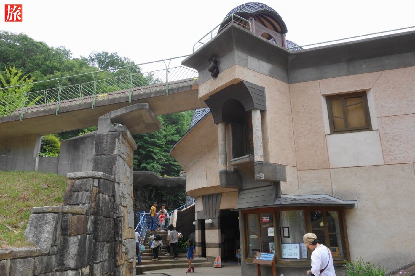 ムーミン屋敷に渡る橋(ムーミン橋)。屋敷を見上げてみる。屋敷入口です。