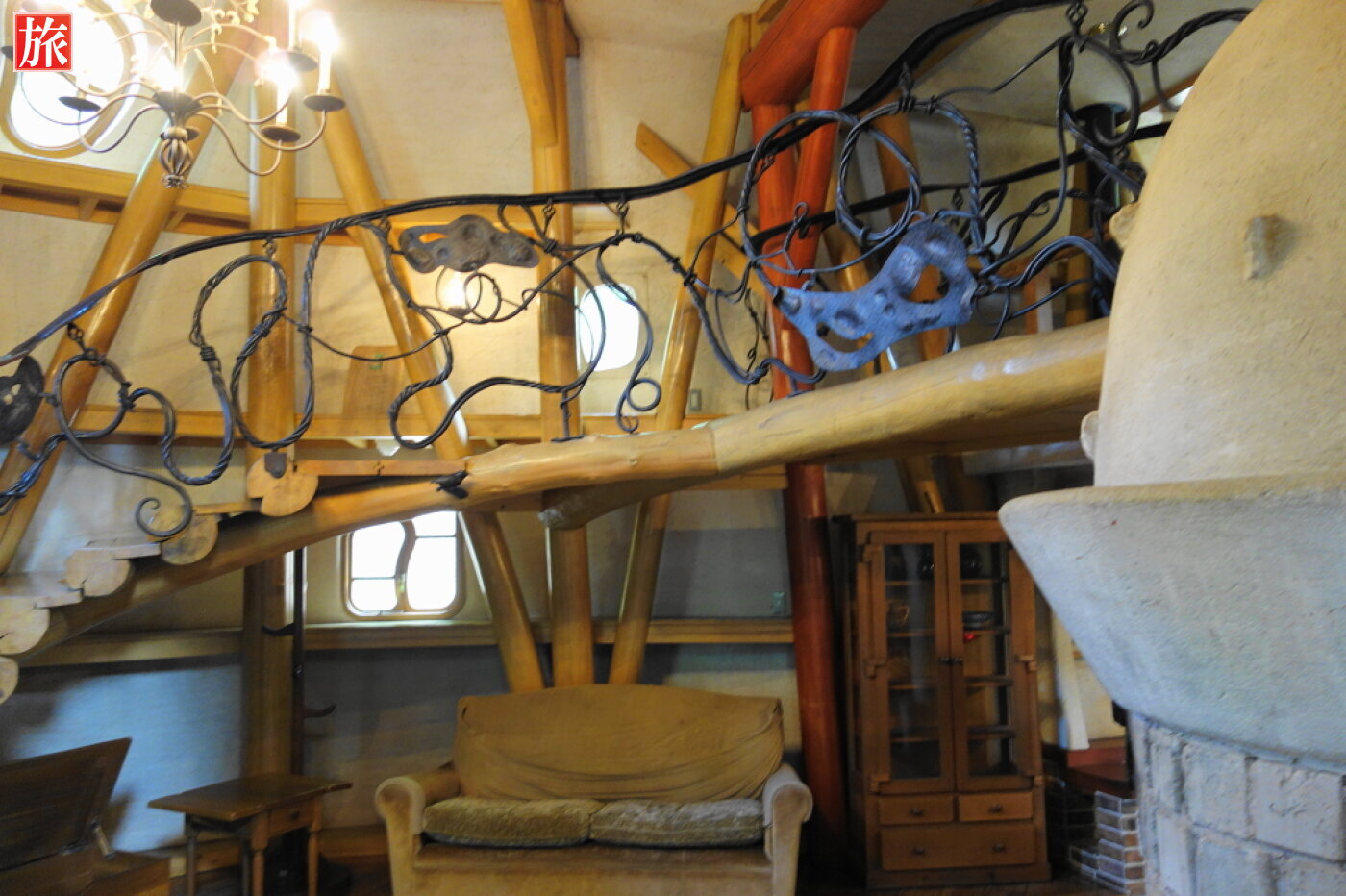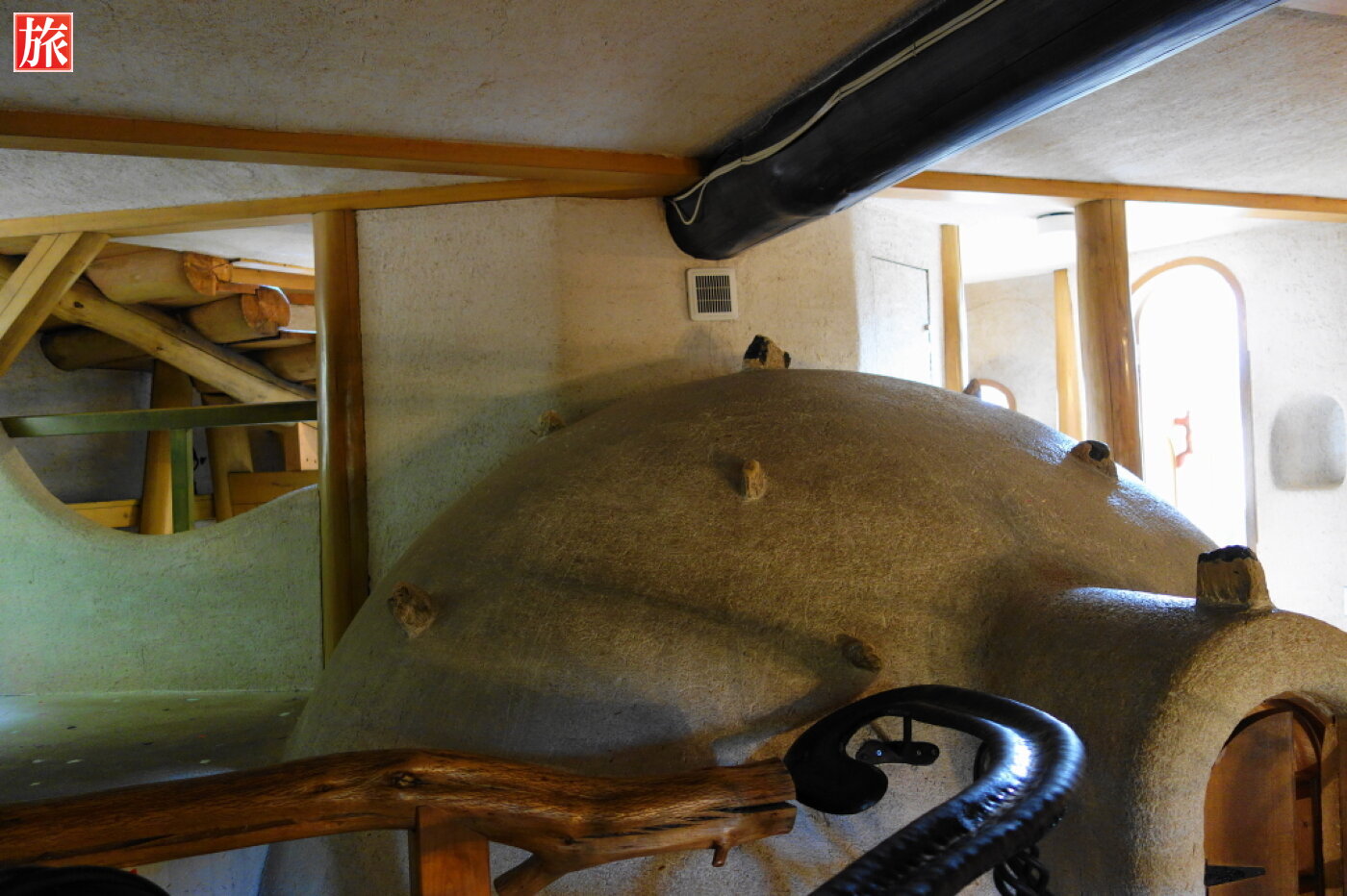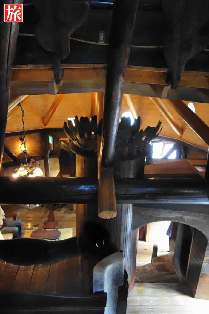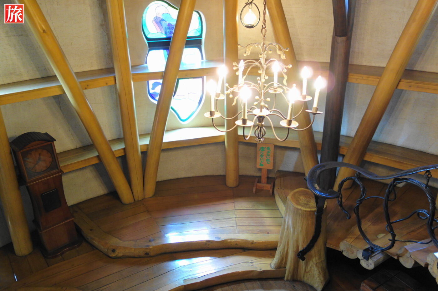 内部から低い方の天井を眺めた様子です。可愛らしいベッドがありました。高い方の天井を眺めた様子です。下を眺めた様子。
