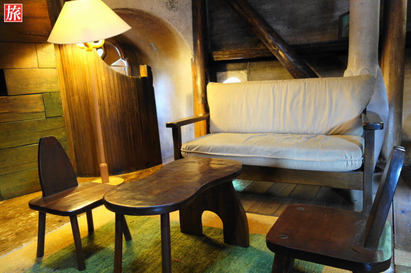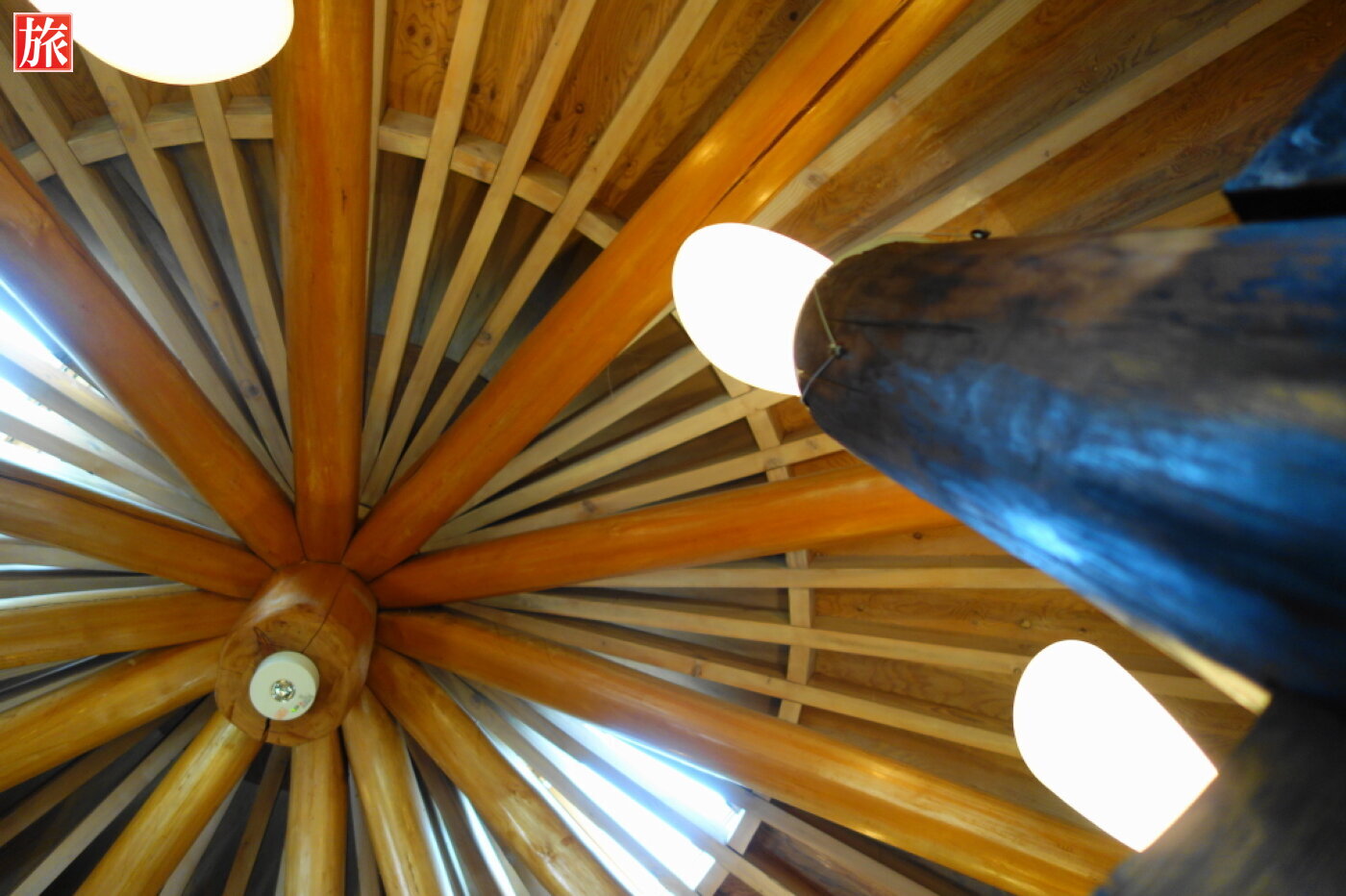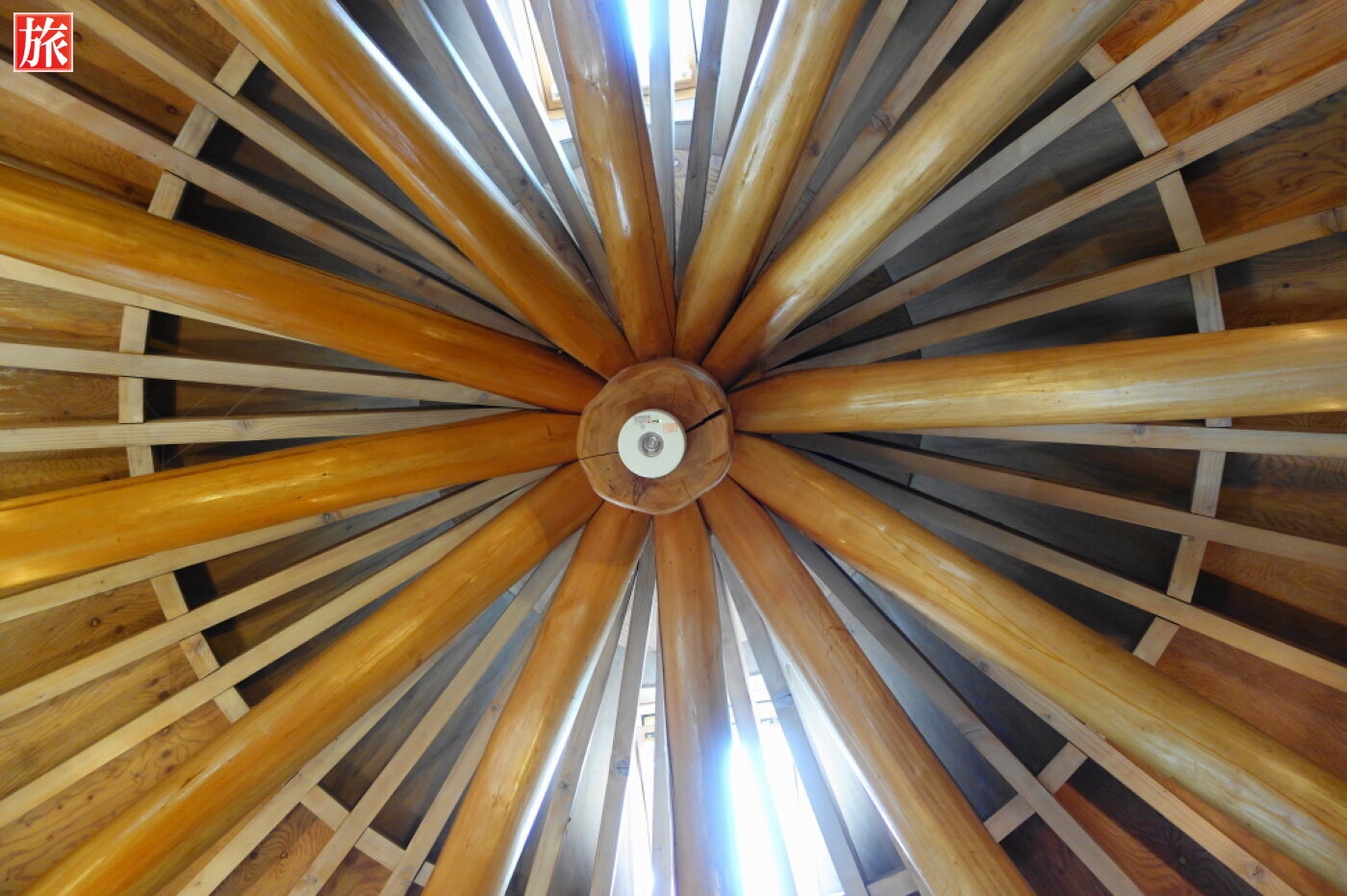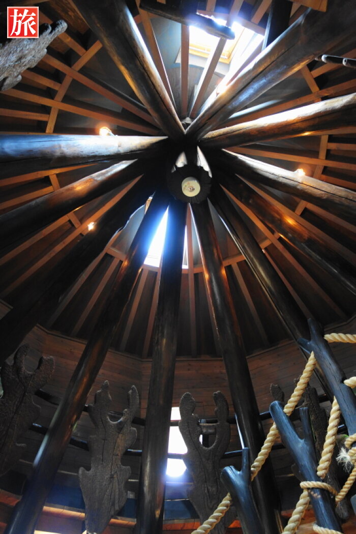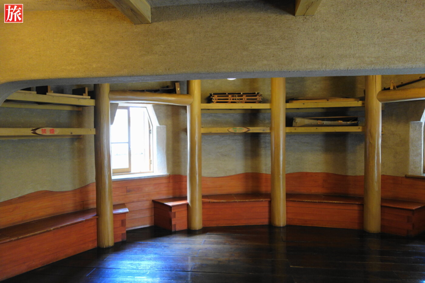 内部から低い方の天井を眺めた様子です。可愛らしいベッドがありました。高い方の天井を眺めた様子です。下を眺めた様子。
