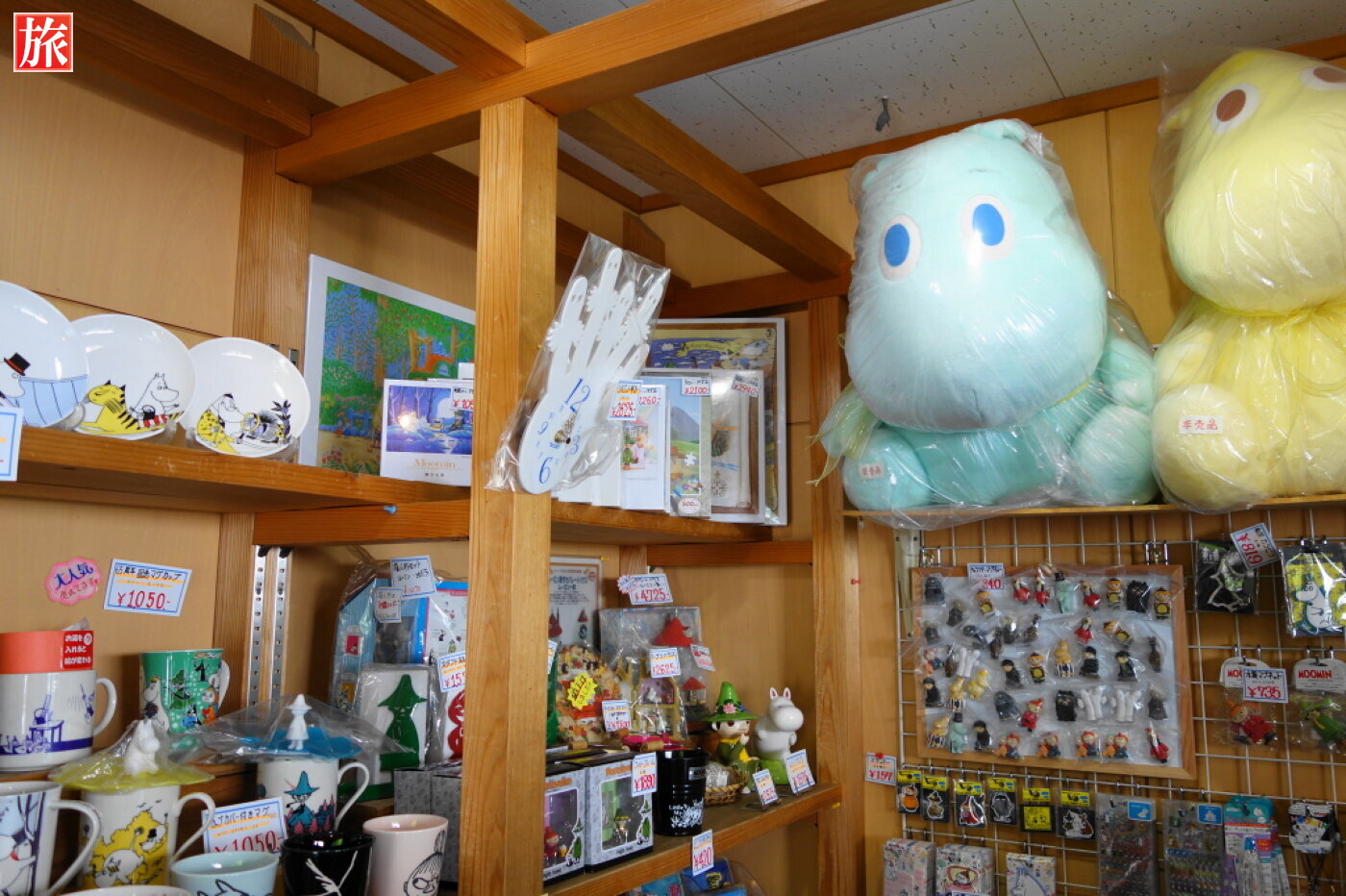 フットサルのコートでしょうか?公園入口付近にあるお土産店、森の店。ムーミングッツが盛りだくさん。