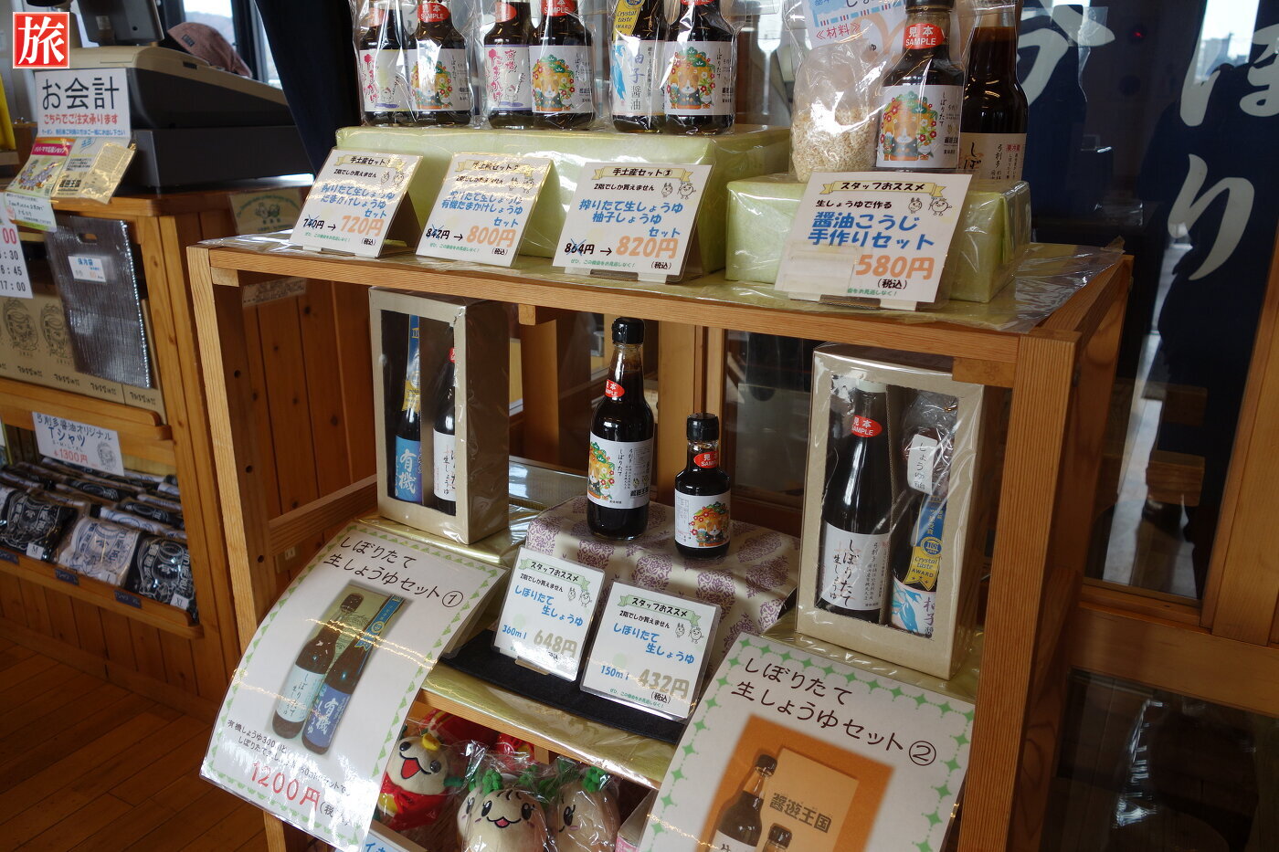 | 料金 | 入館(見学)無料、木桶仕込しょうゆ360ml:518円、吟醸純生しょうゆ360ml:691円、有機しょうゆ300ml:562円 |