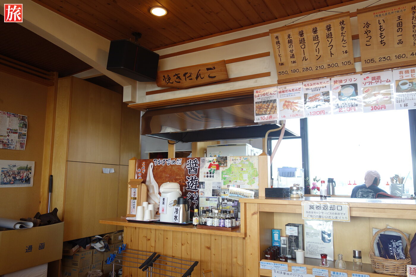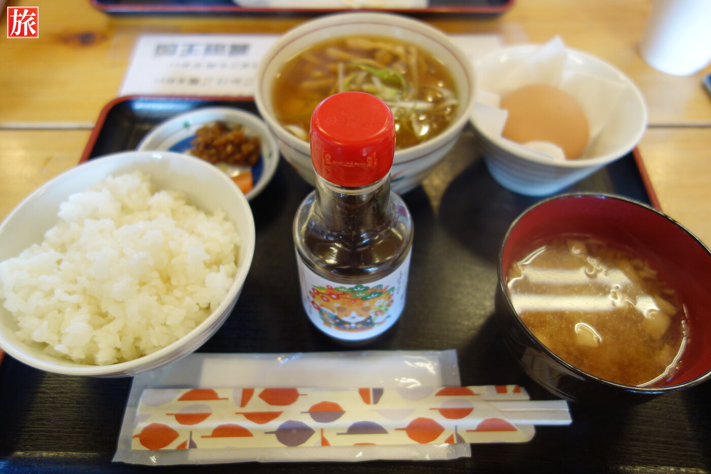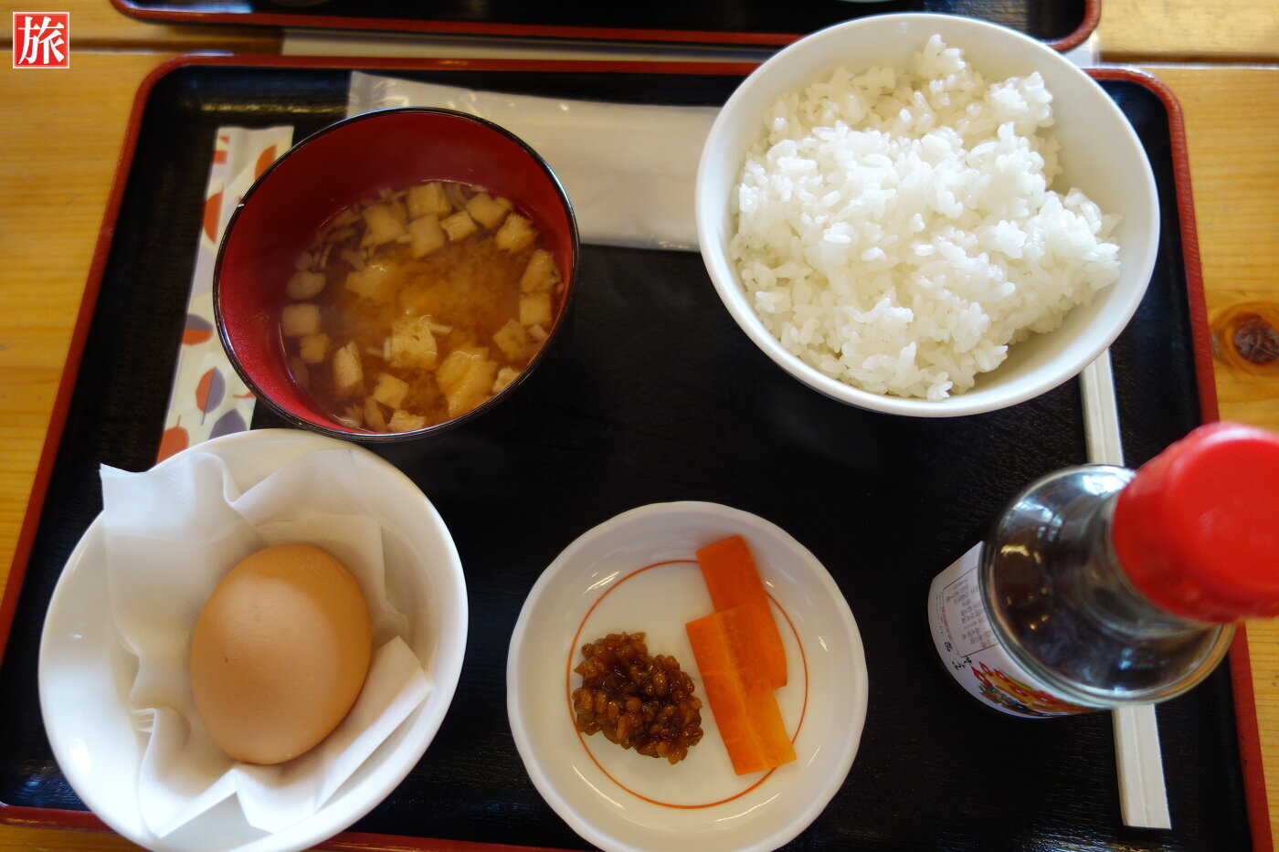 軽食コーナーには座席が24名あり。念願のたまごかけごはんを「しぼりたての生醤油」かけ頂きます。