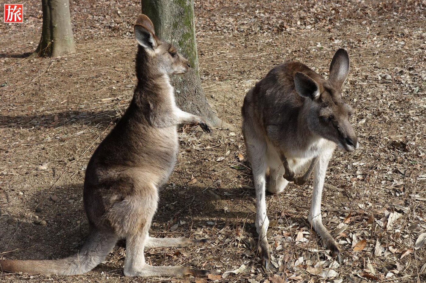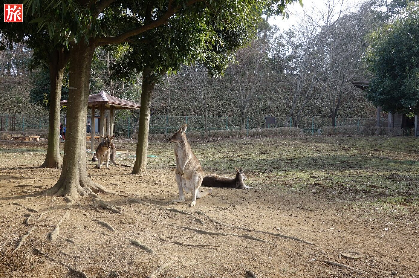 ここからはカンガルーコーナーです。入り口から入ると既にほぼ放し飼いです。コンクリーの通路を普通に横切っていきます。ベビーカーは注意が必要です。