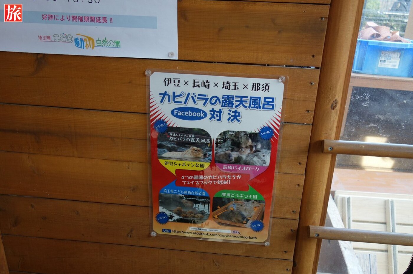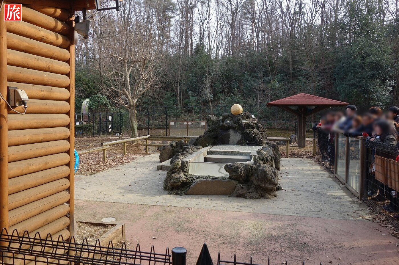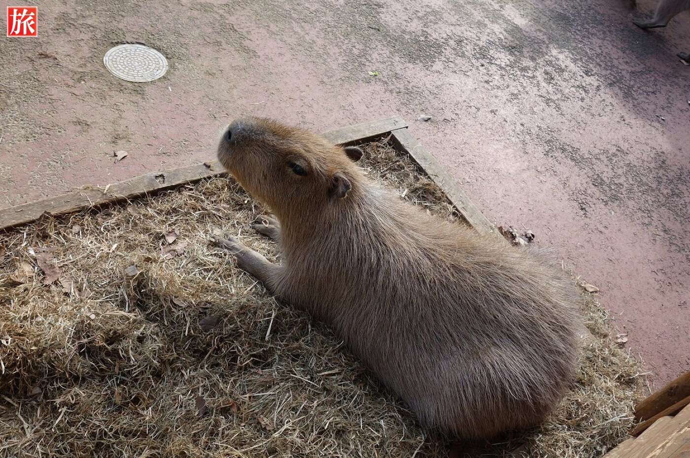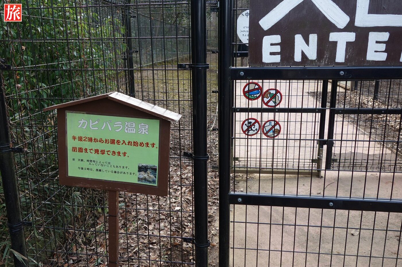 カピバラ温泉。14時にお湯が入り、入浴シーンを見ることが出来ます。時間前でしたが既に凄い人だかりが出来ていました。
