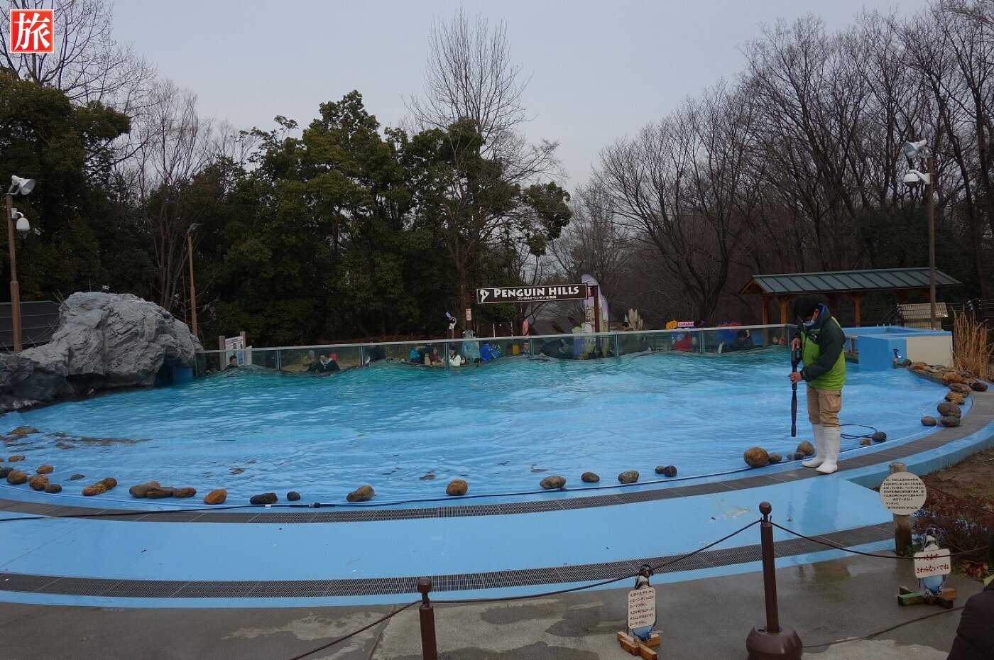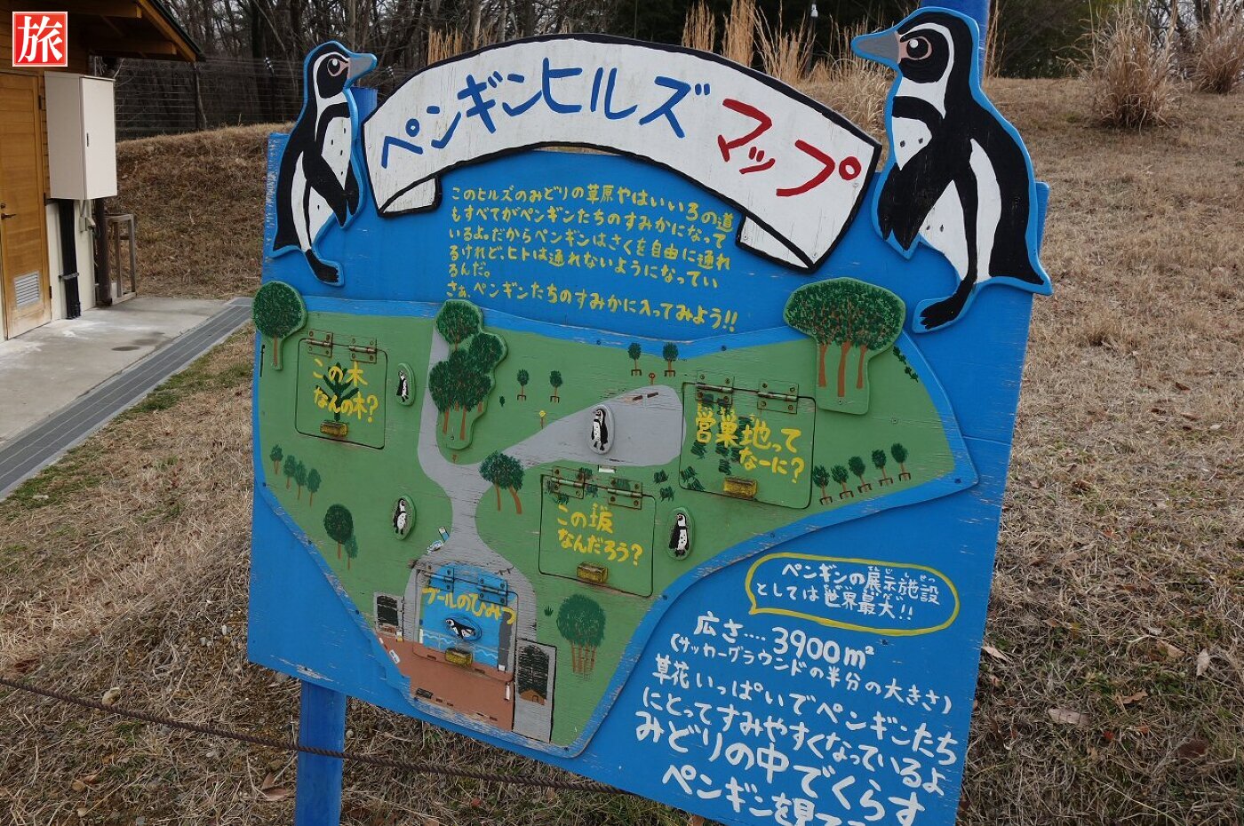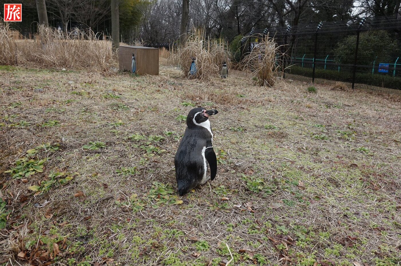 ペンギンヒルズ、ペンギンが放し飼いされています。右の写真のように、絵なのか本物なのか戸惑います。