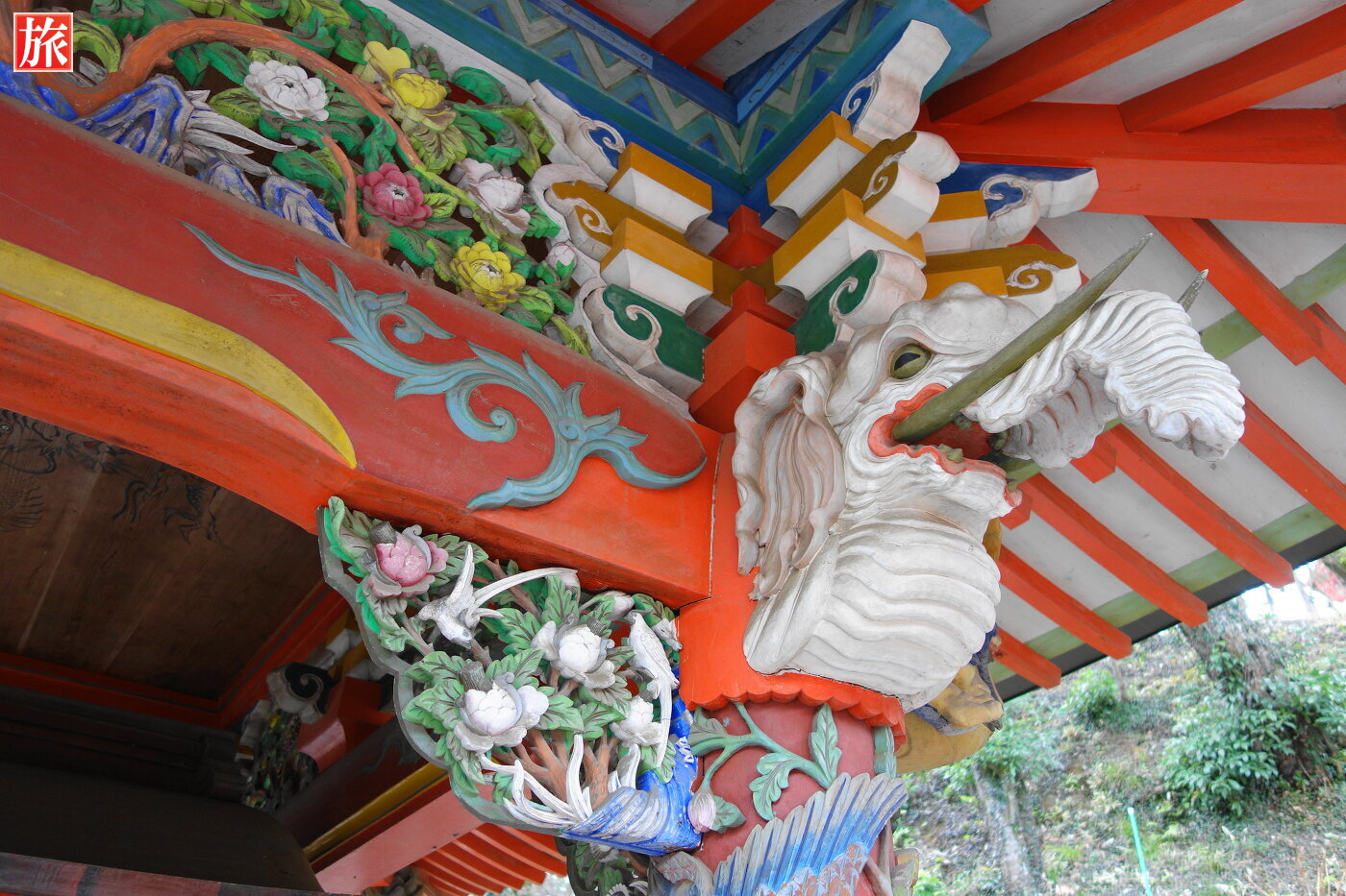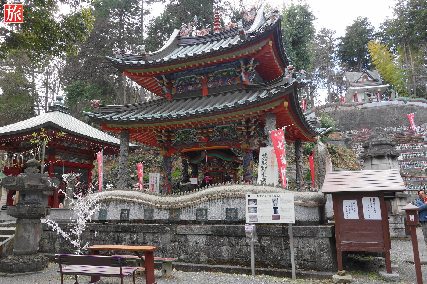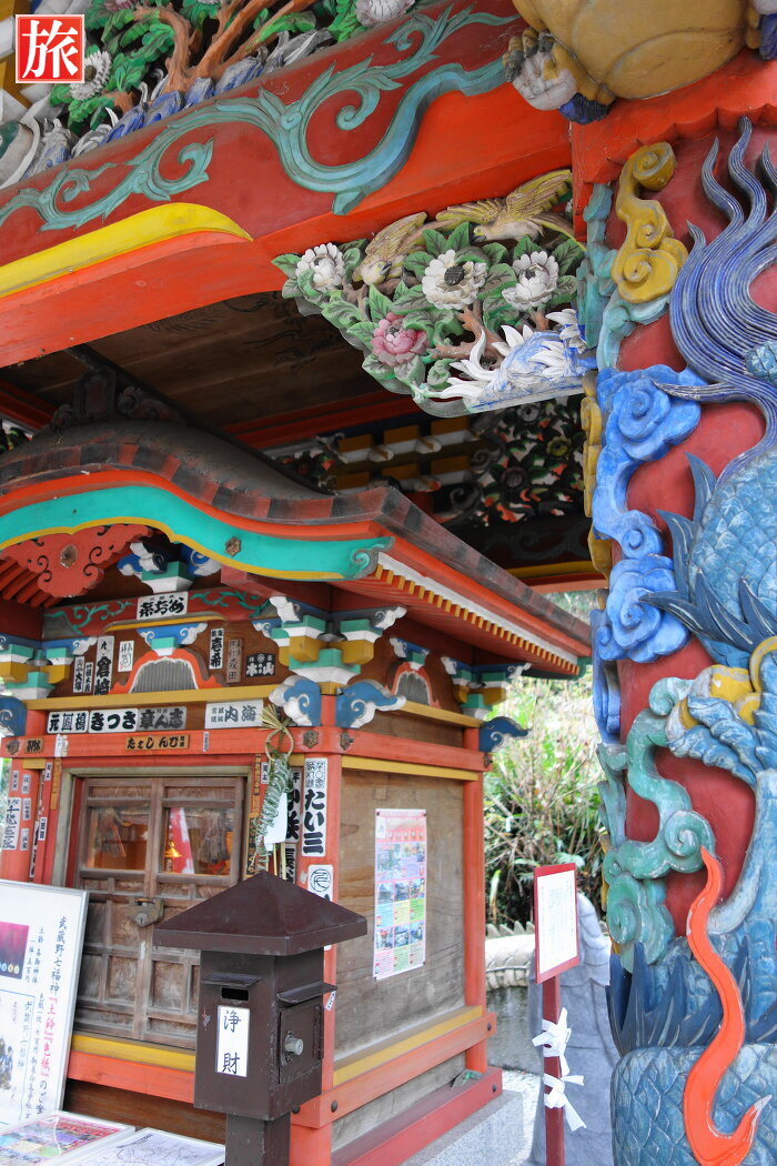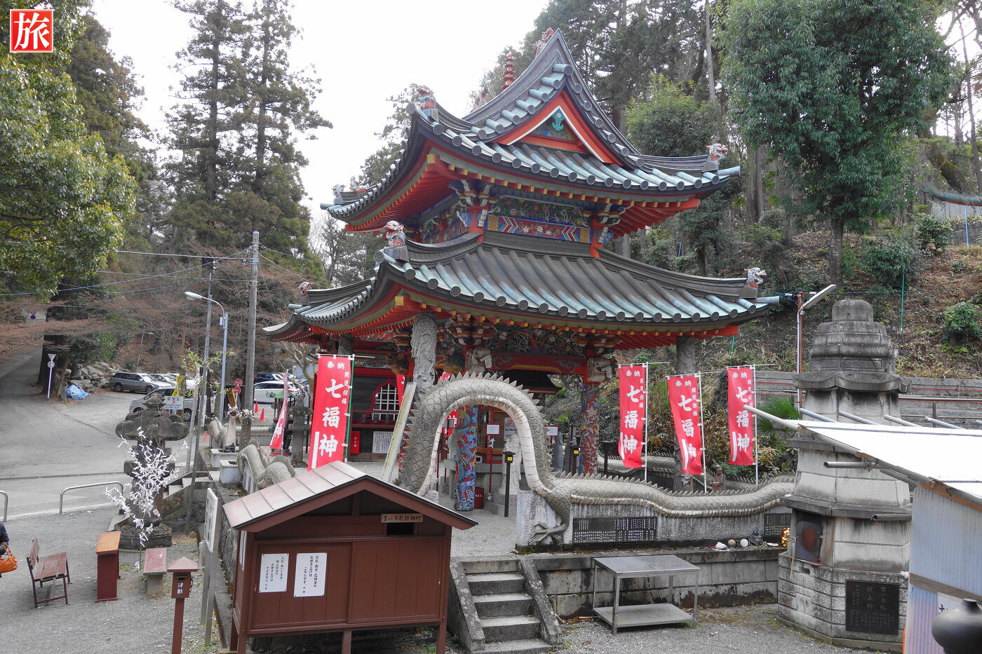武蔵野七福神堂。お堂の周囲を一周すれば七福神巡り終了です。色とりどりの花や白い象・鳥などが飾り彫られ異国風の雰囲気を感じます。