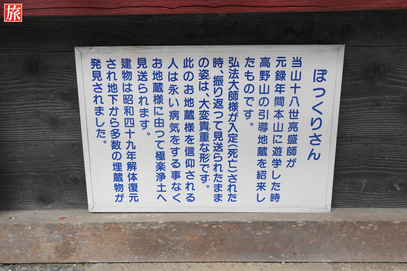 「ぽっくりさん」が祀られている開山堂。 ほっくりさんの説明。