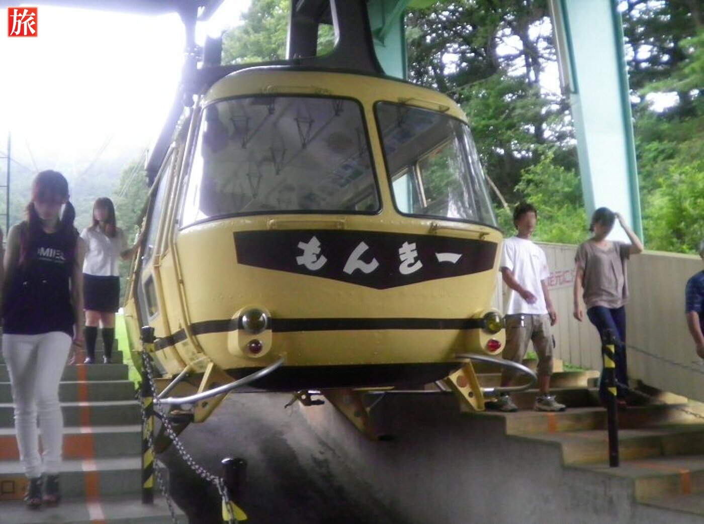 往復チケット820円を買い15分置きに発車しているロープウェイ、もんきー号へ乗車、ばんび号と入れ替わり交互で運行してるようです。お盆休み最終日50人乗りもんきー号は満員、エアコンもないし暑い日は結構つらいかもです。