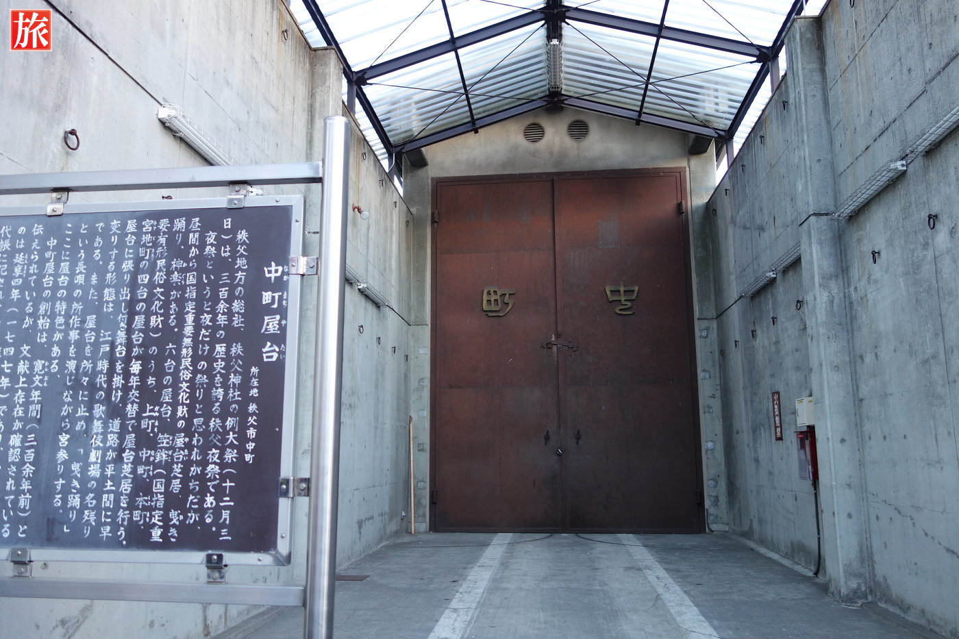 手水舎。神馬舎。秩父夜祭の説明。本町屋台庫。秩父夜祭に合わせ、屋台の組み立てられこちらに格納されます。