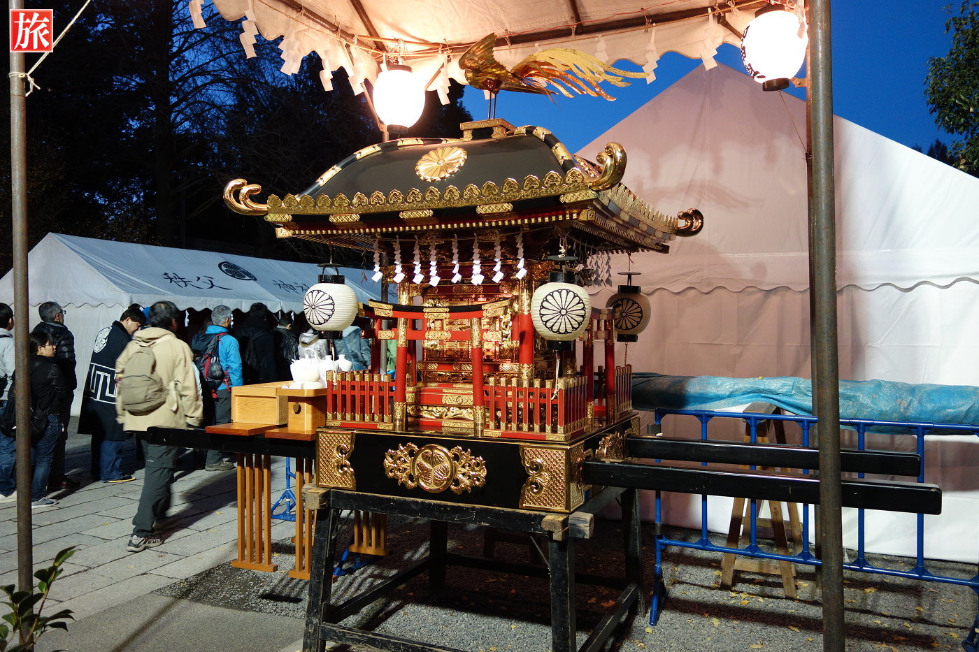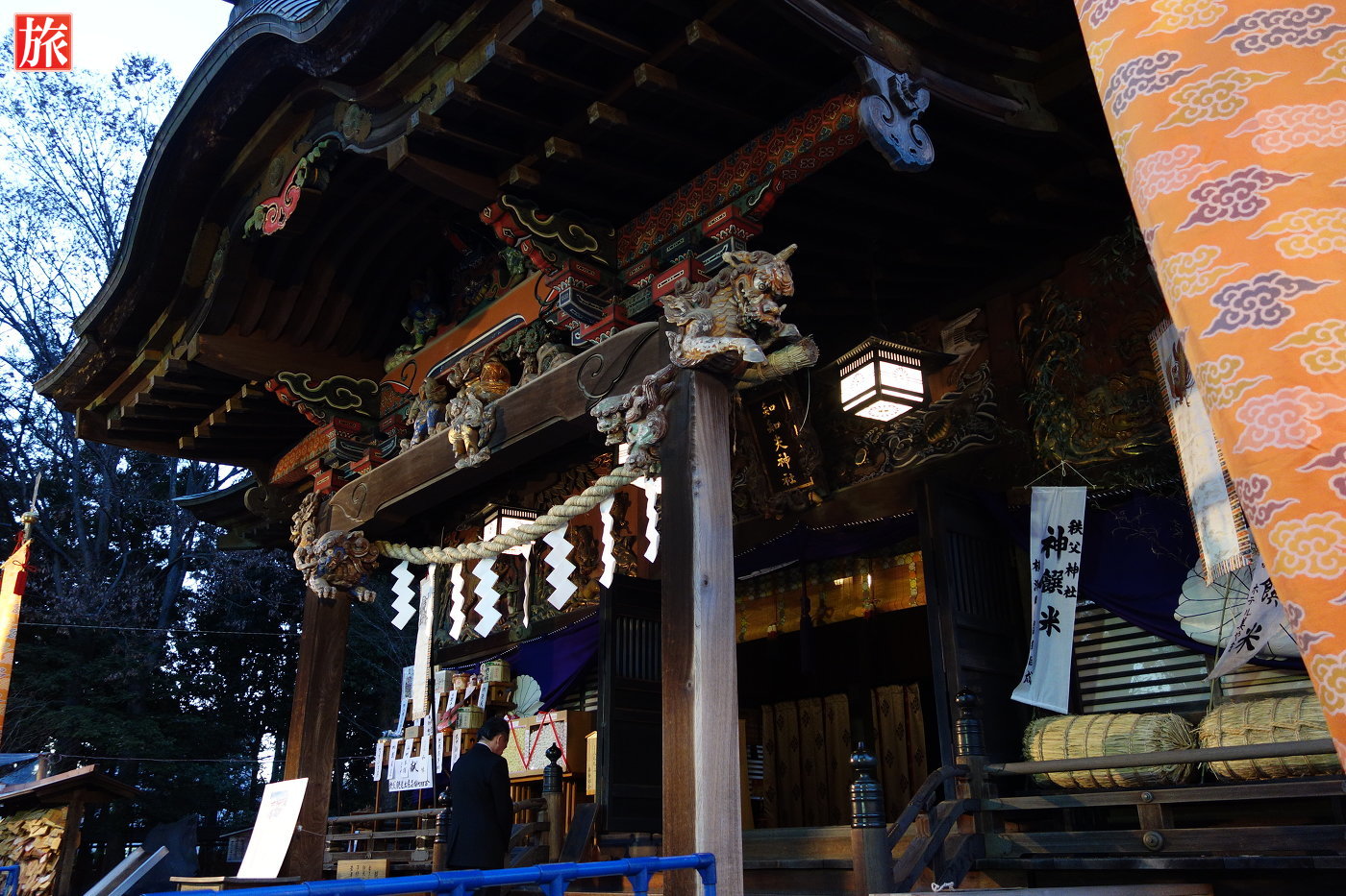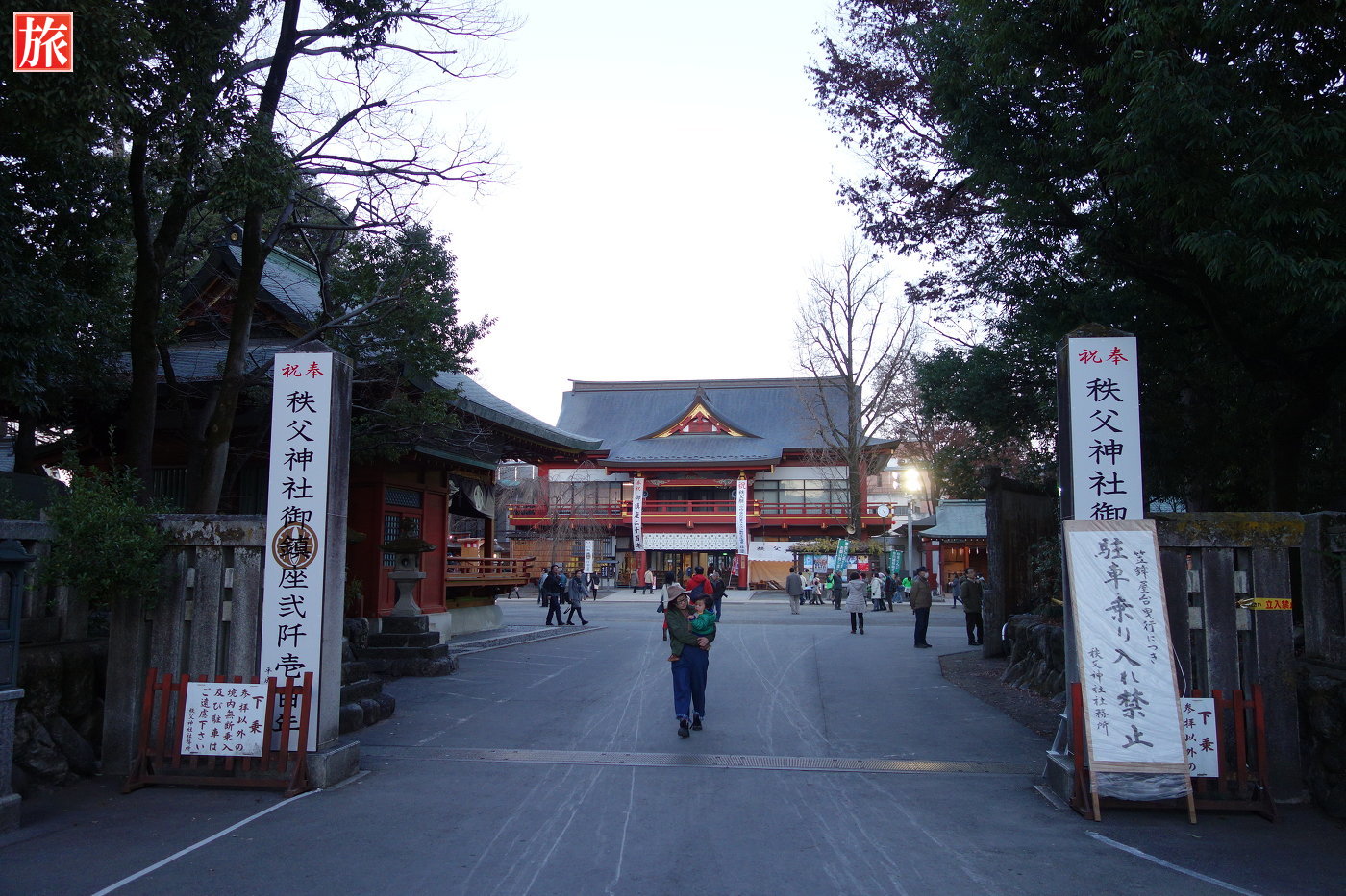 12月の例祭 ※「秩父夜祭」で知られる秩父神社。訪れたのが17時を過ぎていたため、物静かな雰囲気でした。武州六大明神(小野神社(東京都多摩市一之宮)、二宮神社(東京都あきる野市二宮)、氷川神社(さいたま市大宮区高鼻町1丁目)、秩父神社、金鑚神社(埼玉県児玉郡神川町字二ノ宮)、杉山神社(横浜市緑区西八朔町))に四宮として数えられ、武蔵総社六所宮の大國魂神社(東京都府中市)にも祀られているそうです。大國魂神社の例大祭(くらやみ祭)では、秩父神社の神輿も巡行されそうです。