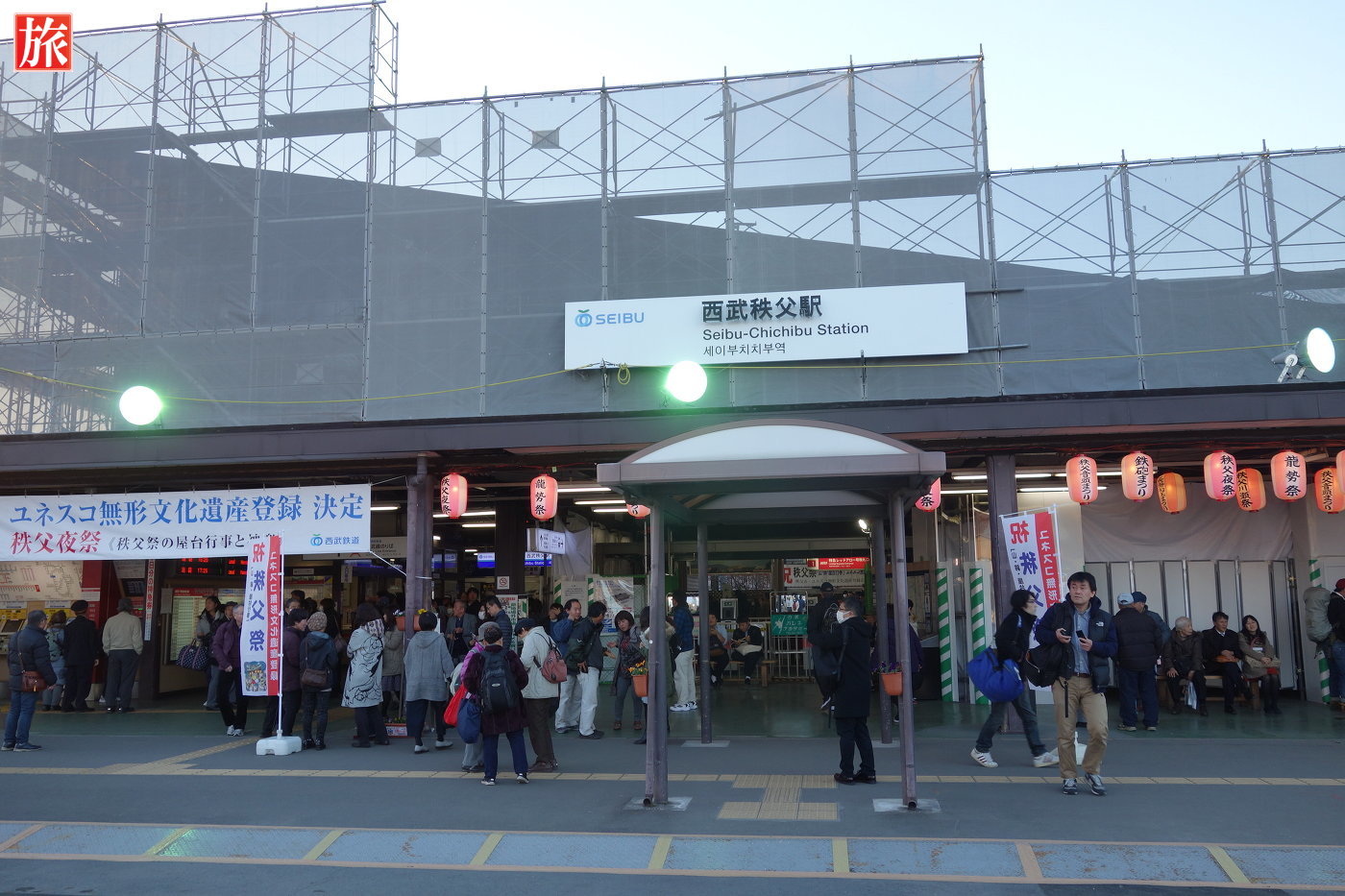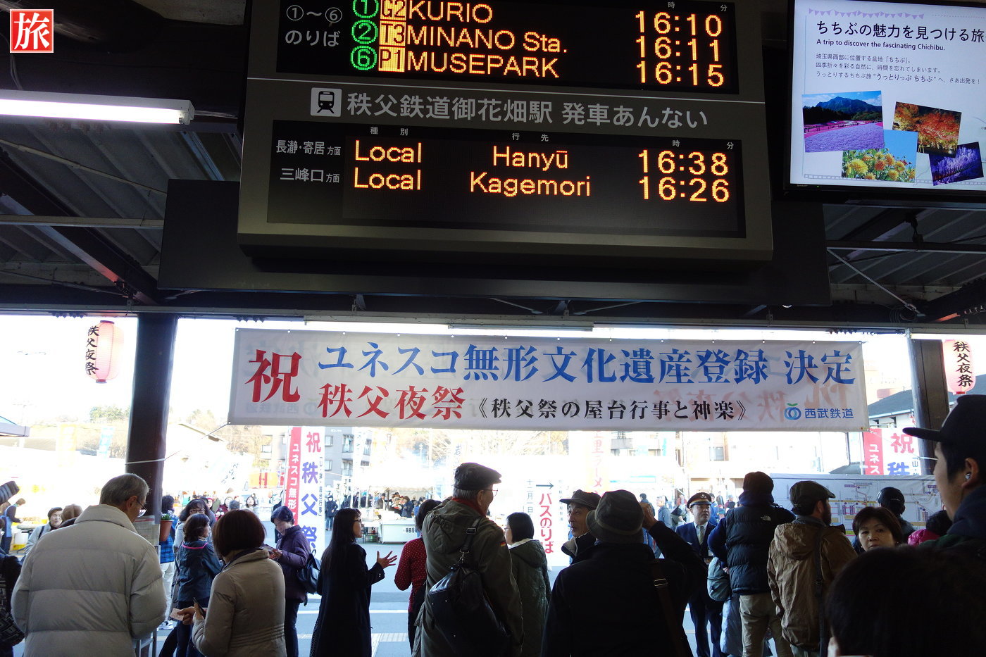 レッドアロー号で西武秩父へ向かいます。西武秩父駅にはユネスコ無形文化遺産登録決定の垂れ幕がかかっていました。