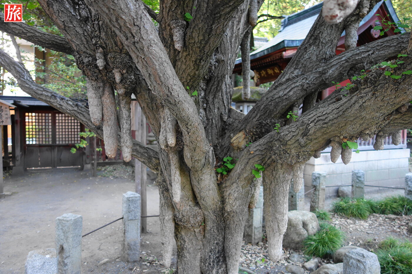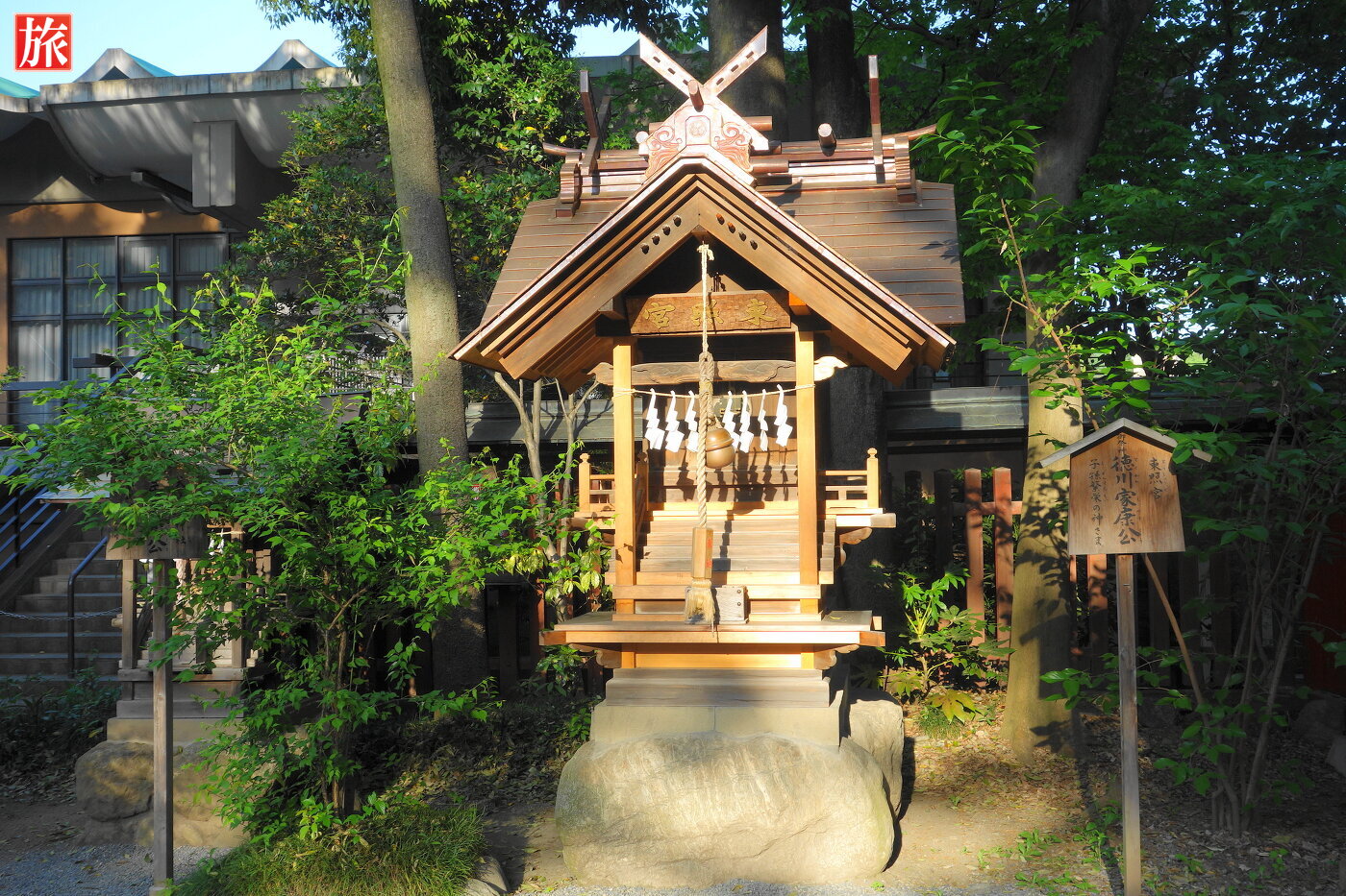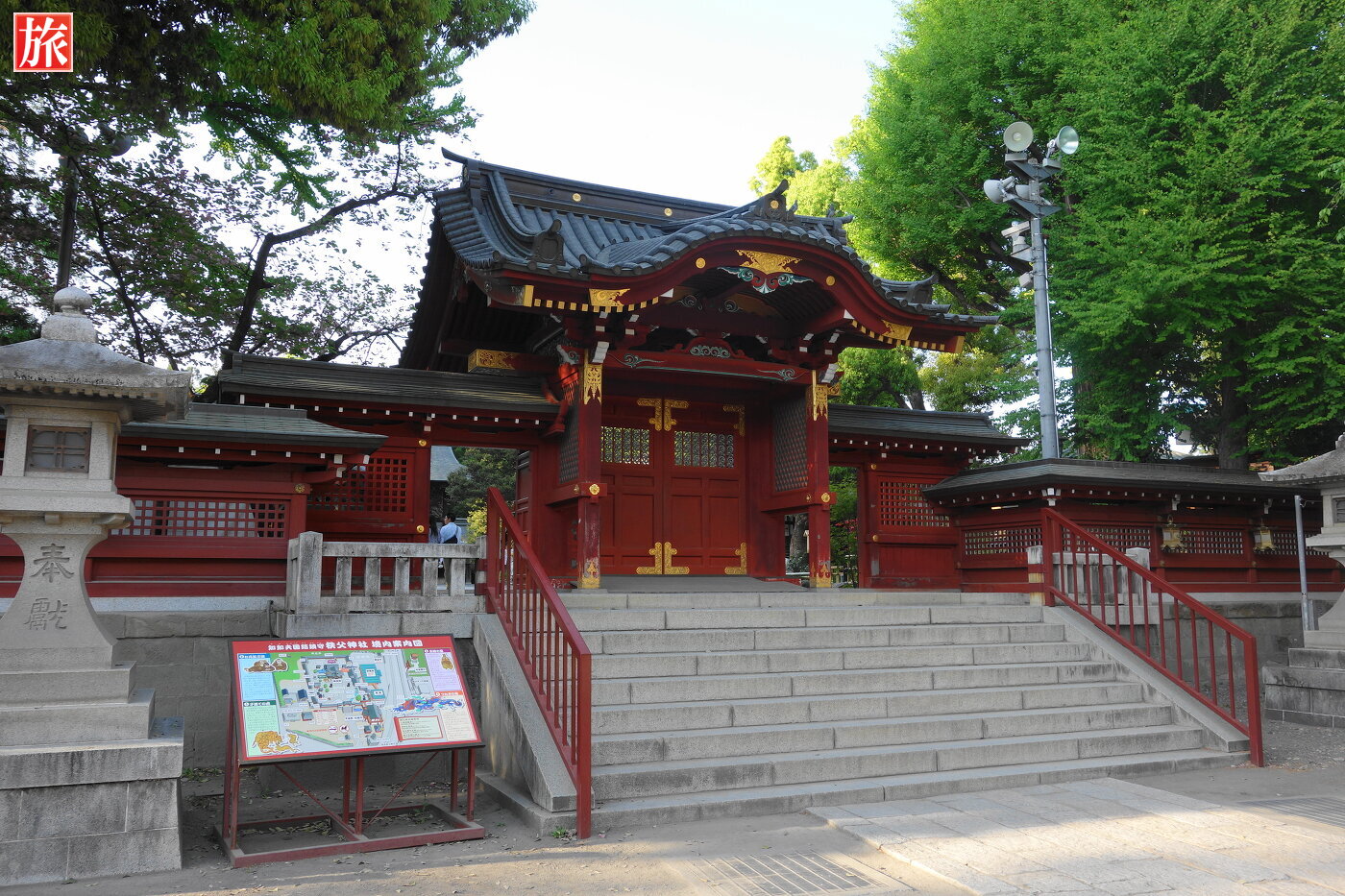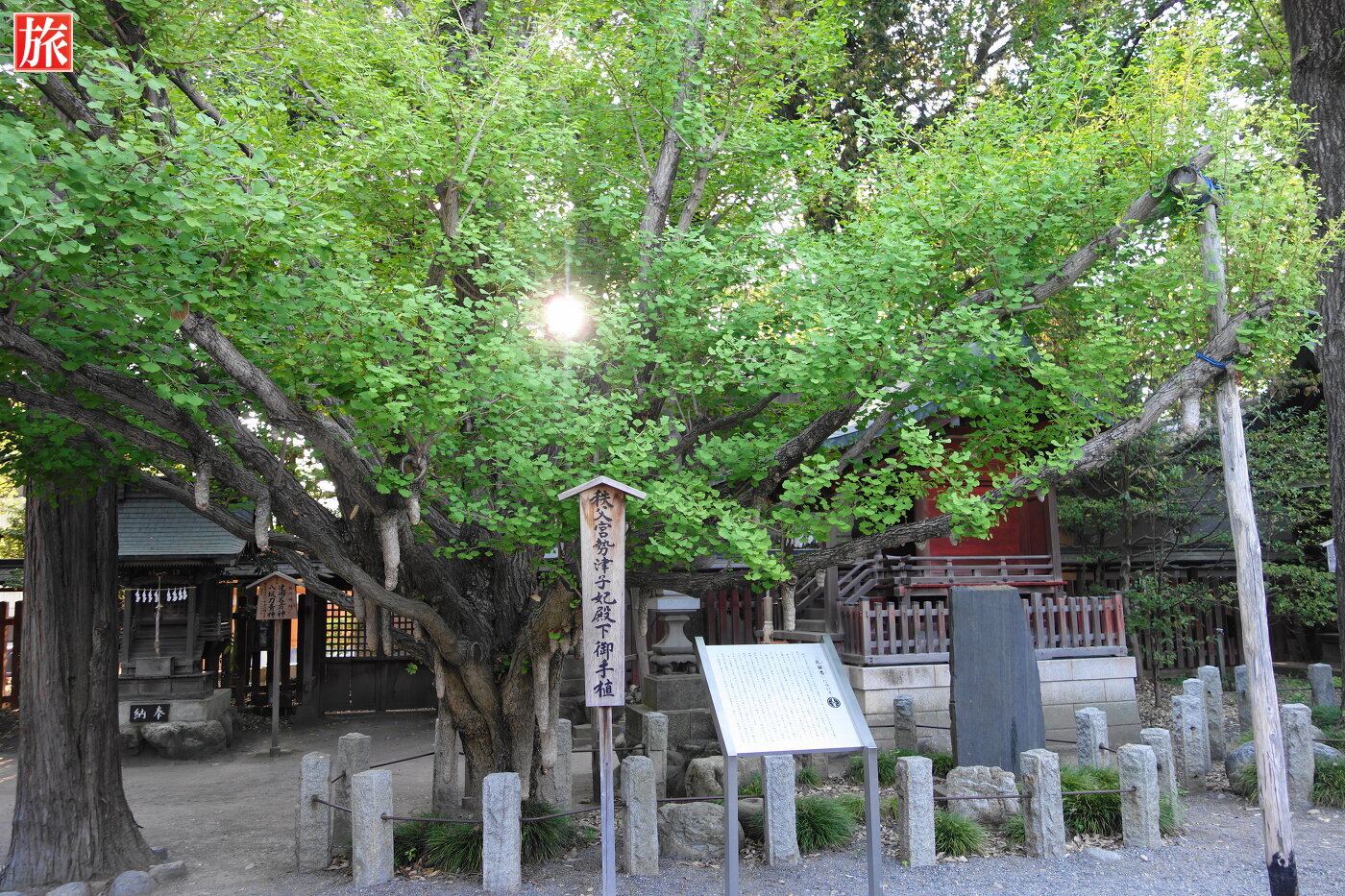 平成殿・社務所。神門。境内案内図。銀杏のご神木。東照宮。天満天神宮。禍津日社(まがつひしゃ)。
