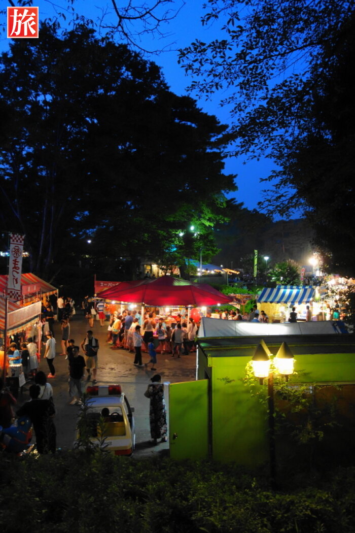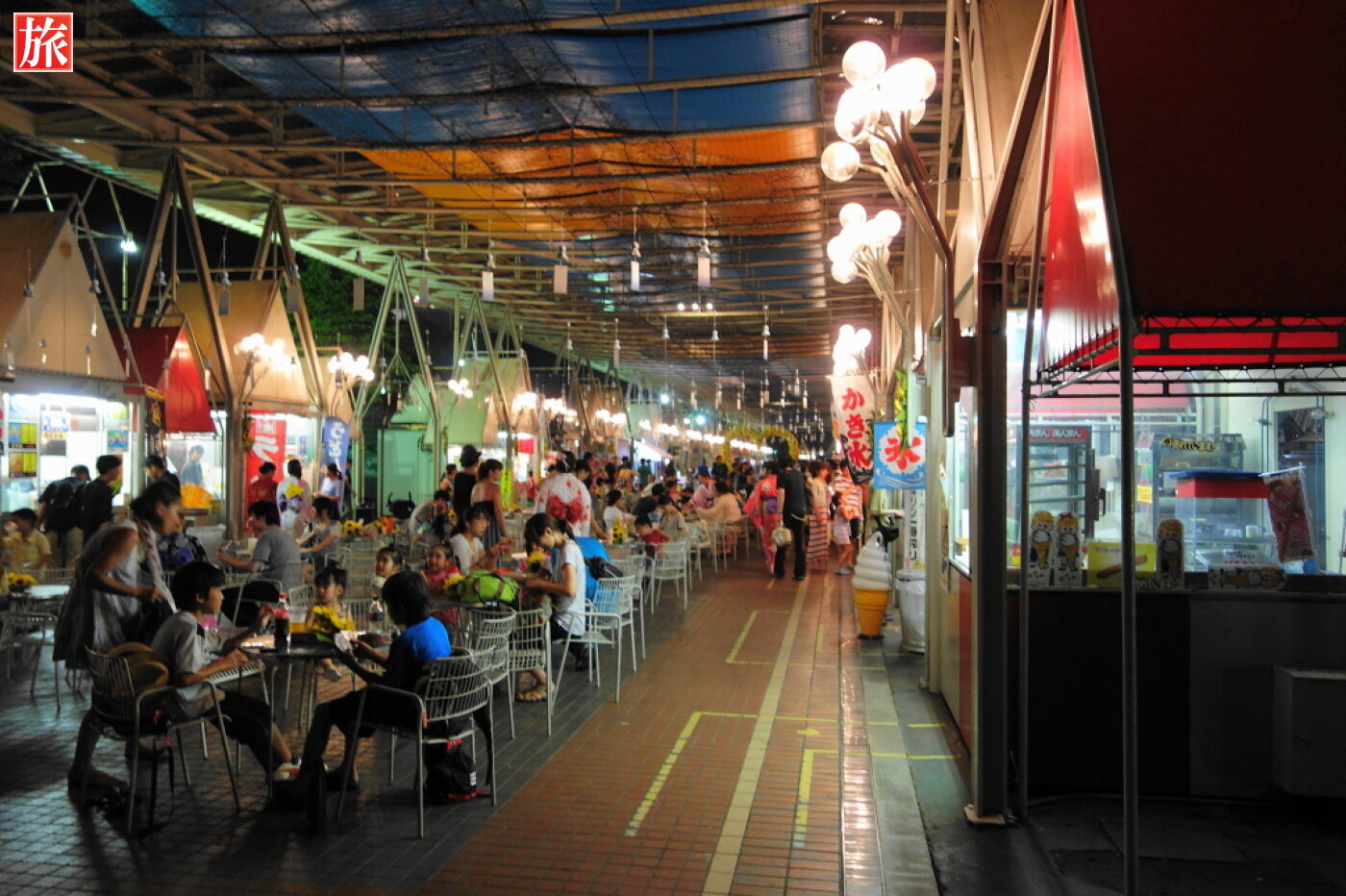 浴衣を着た受付嬢が涼しげです。中央口を入場してすぐの様子です。屋台が沢山出ていました。