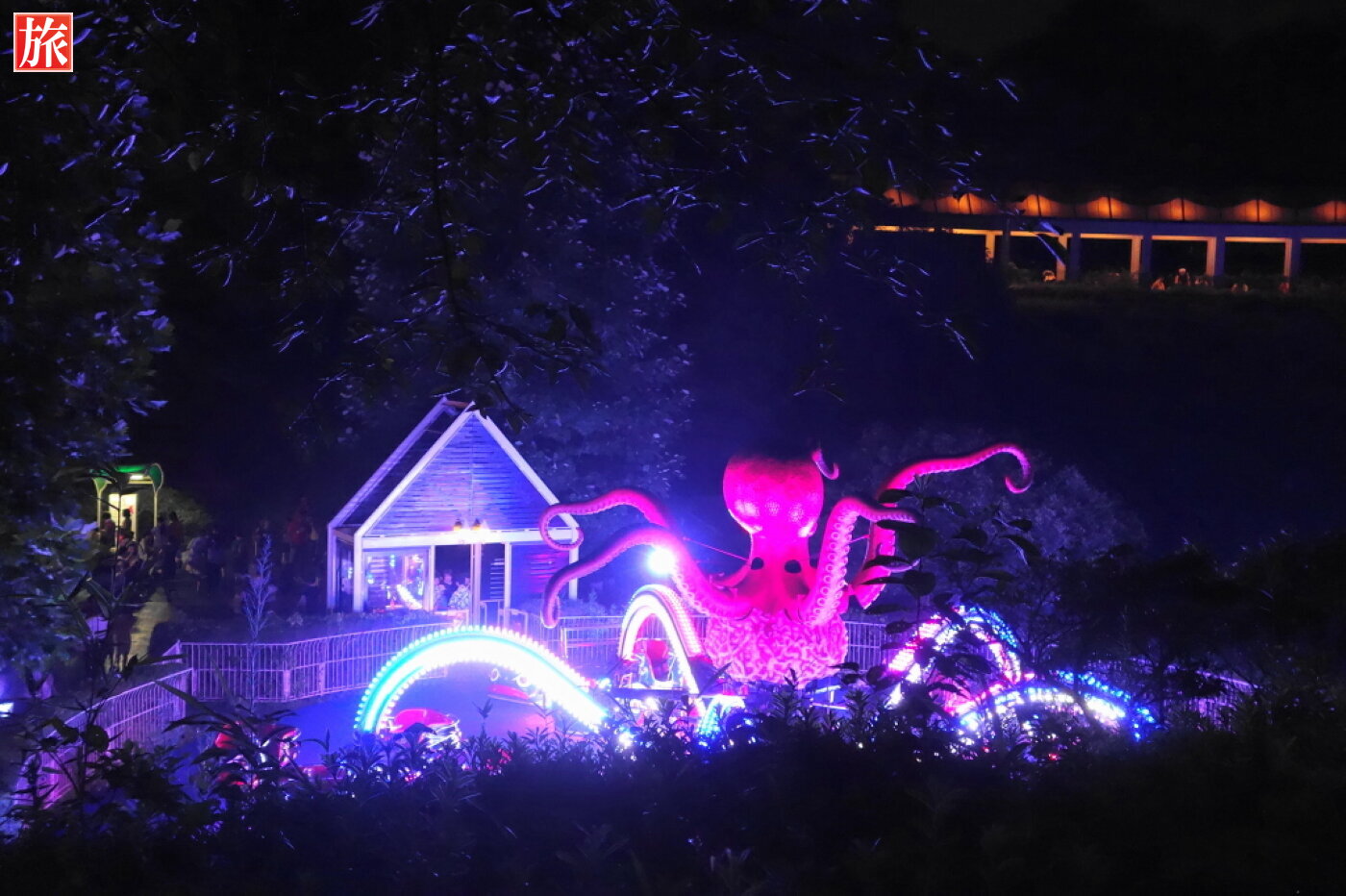 メリーゴーランドと観覧車。アーケード大通りの様子。マジックミラーメイズ。オクトパス。