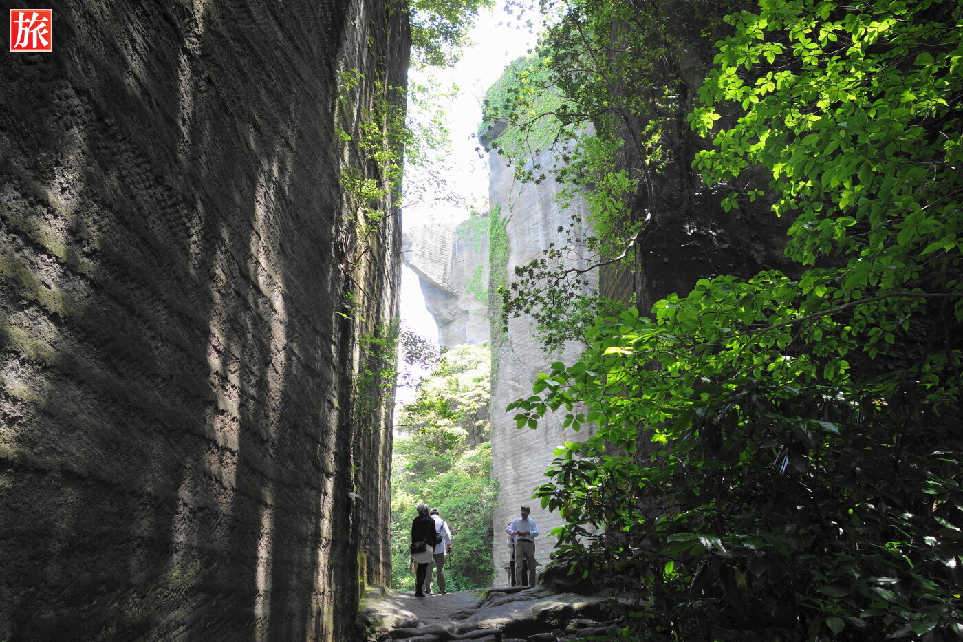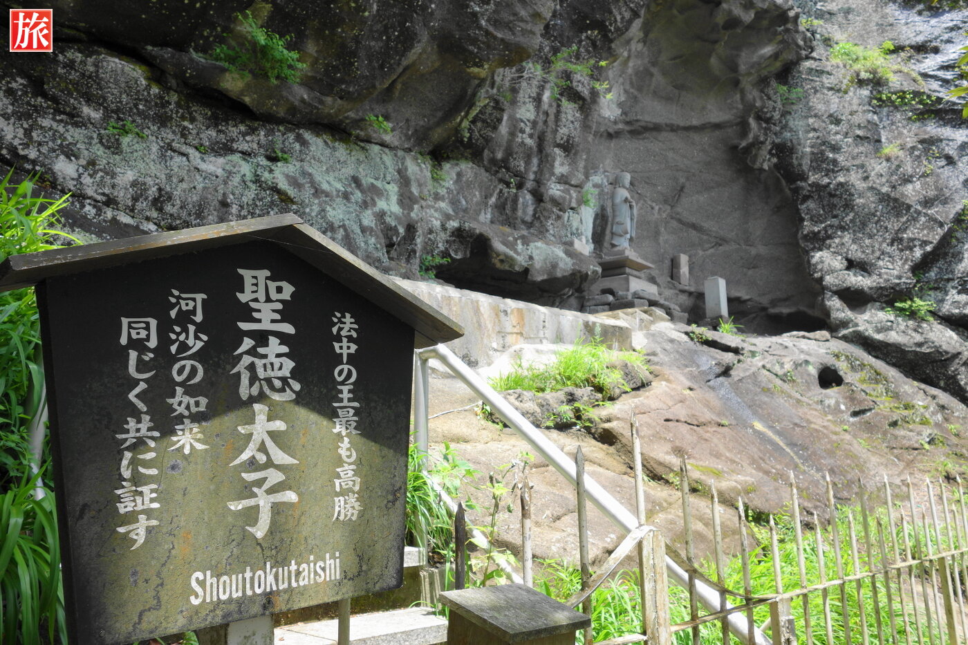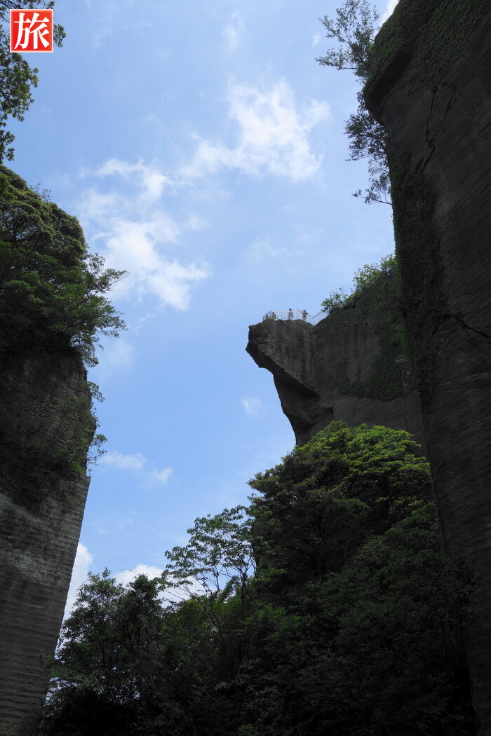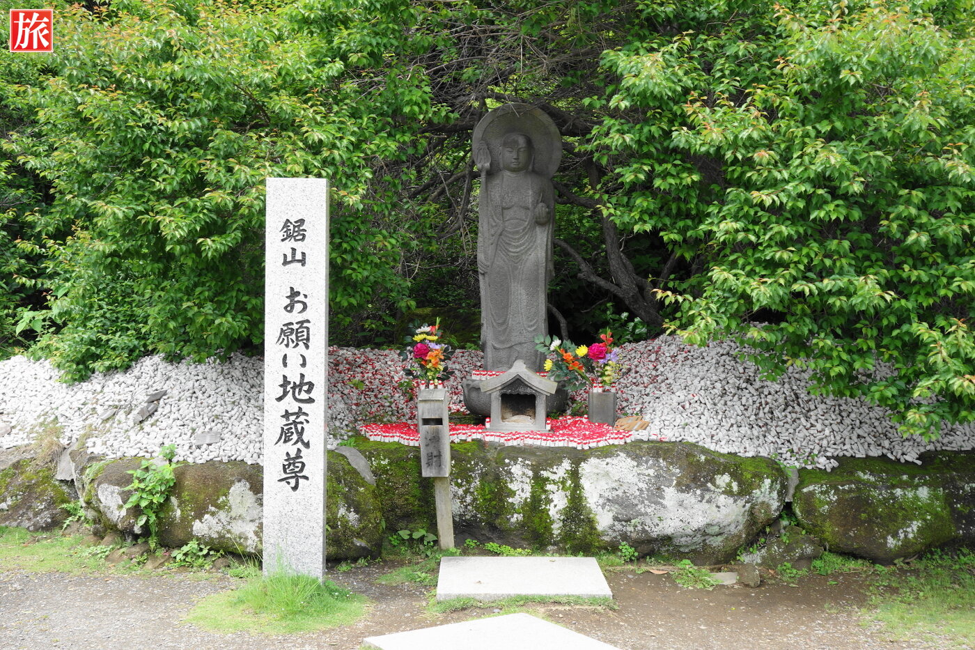 その名のとおりノコギリの歯のような稜線をもつ山で、山頂までをロープウェイが結んでいる。山頂駅から5分ほどの日本寺はこの山の最大の見どころ。とりわけ境内を15分ほど進んだ断崖には、高さ31mの巨大な磨崖仏があり、これは奈良の大仏の2倍近い大きさ。