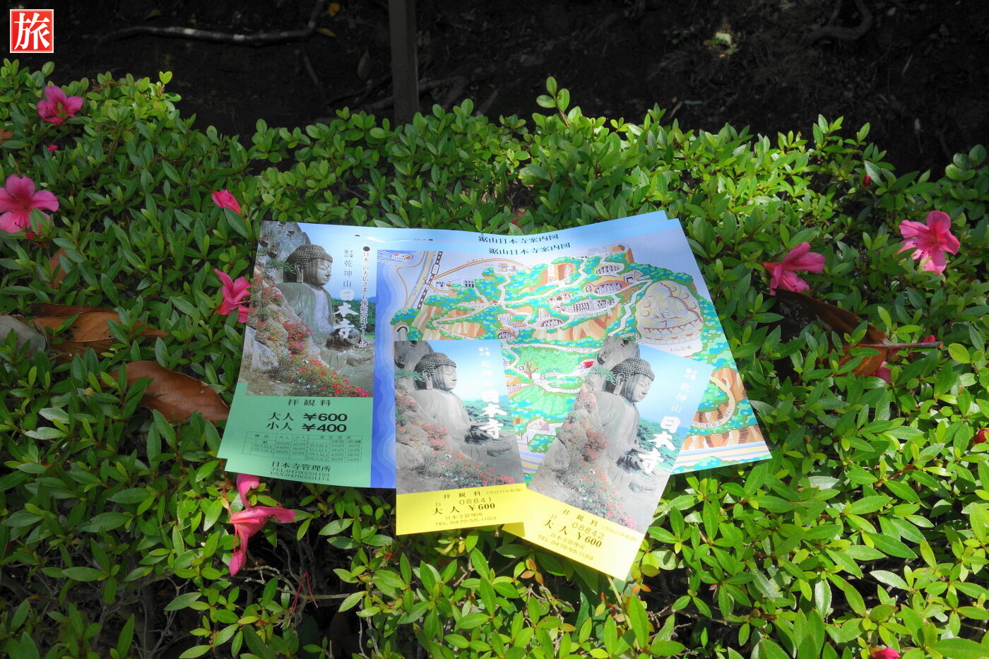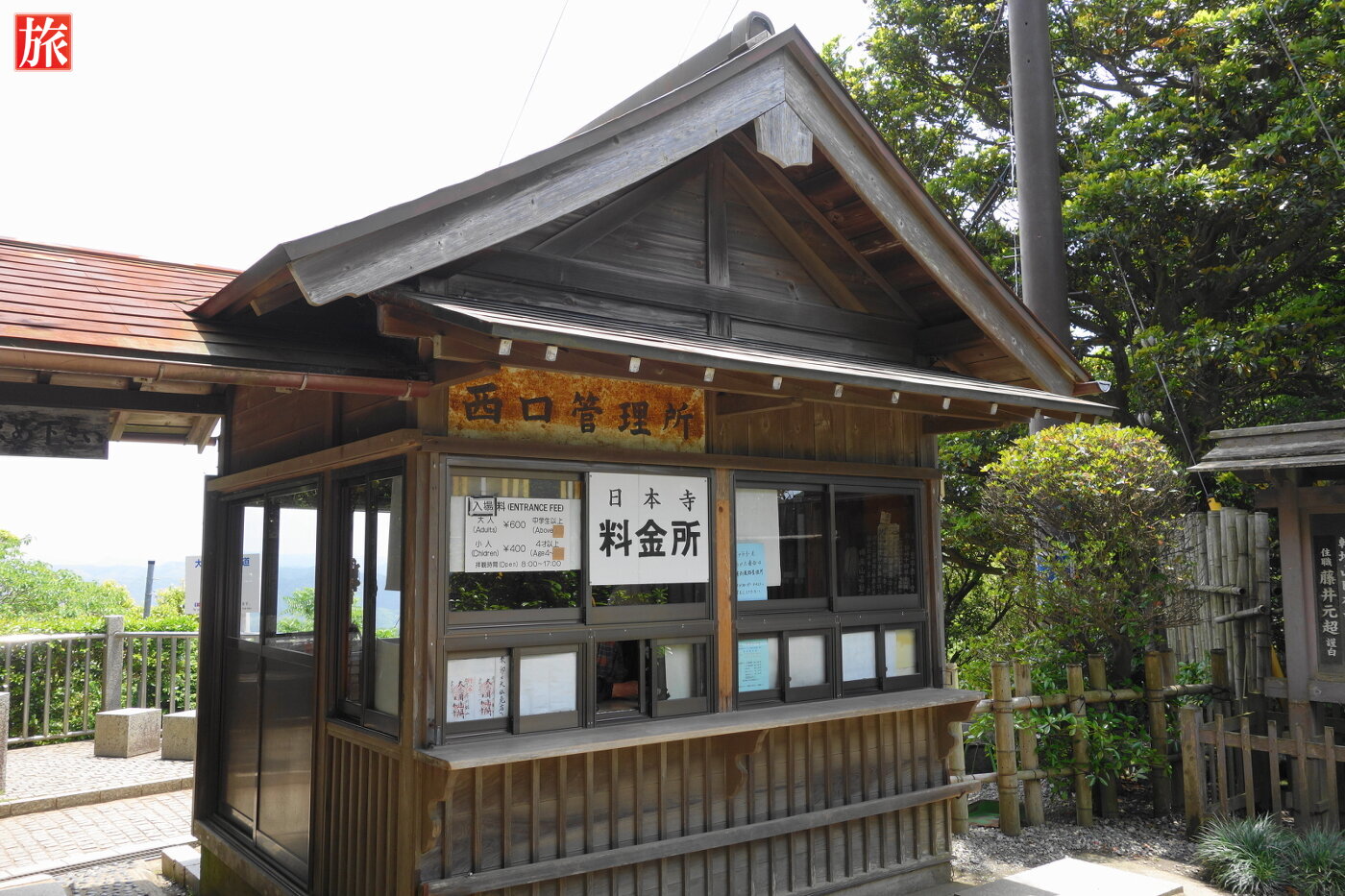 鋸山山頂から7-8分くらいで西口管理所(日本寺境内出入口)に着きます。鋸山・日本寺案内図。日本寺の拝観チケット。西口管理所です。拝観は大人一人600円でした。