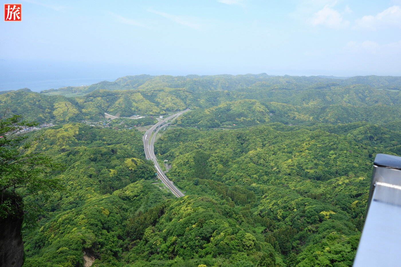 瑠璃光展望台から地獄のぞき・展望台を眺める。鋸山ロープウェー山頂駅方向。天気は良かったのですが、気温が高い(5月なのに真夏日)せいか霞んでいます。