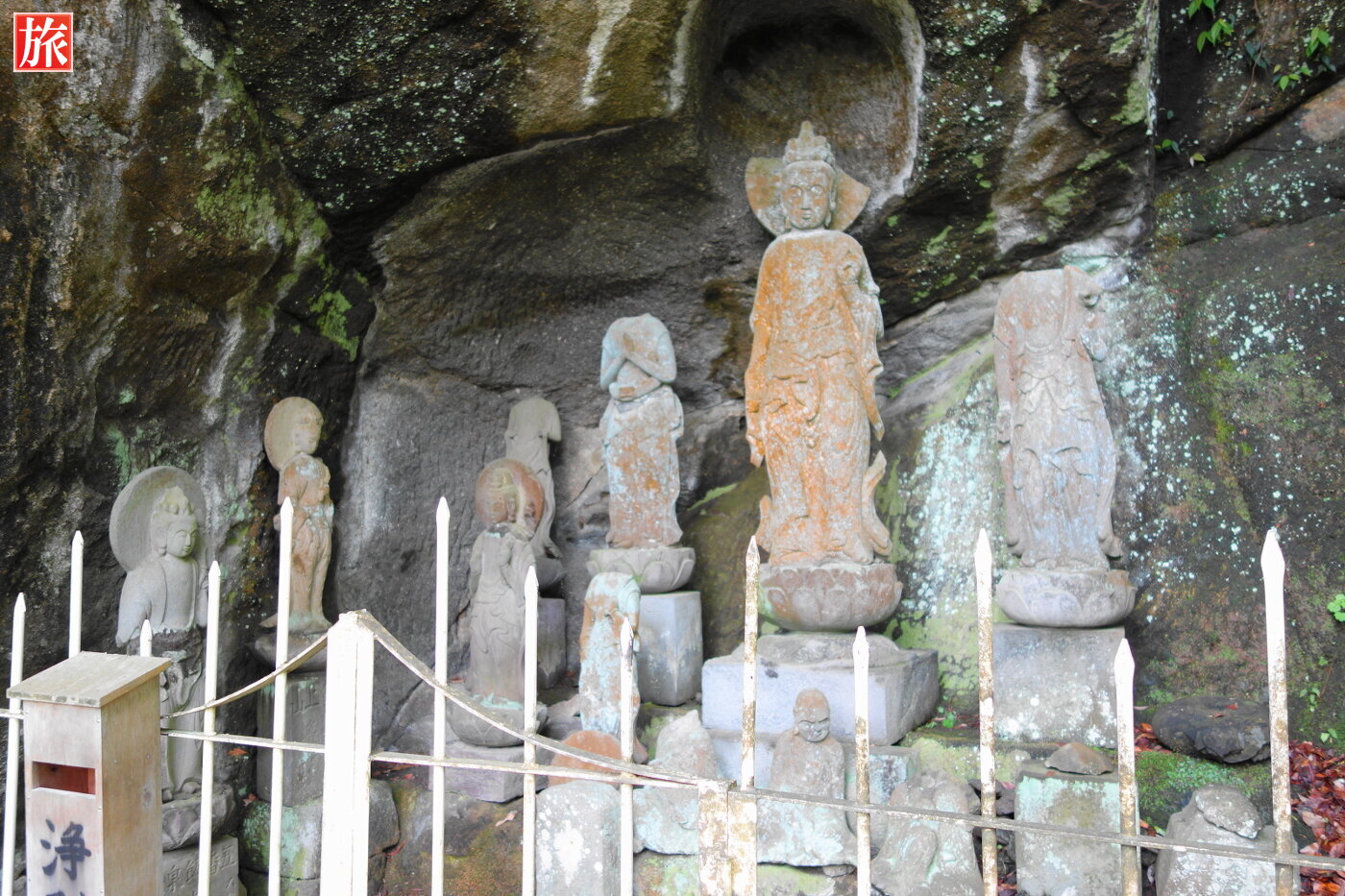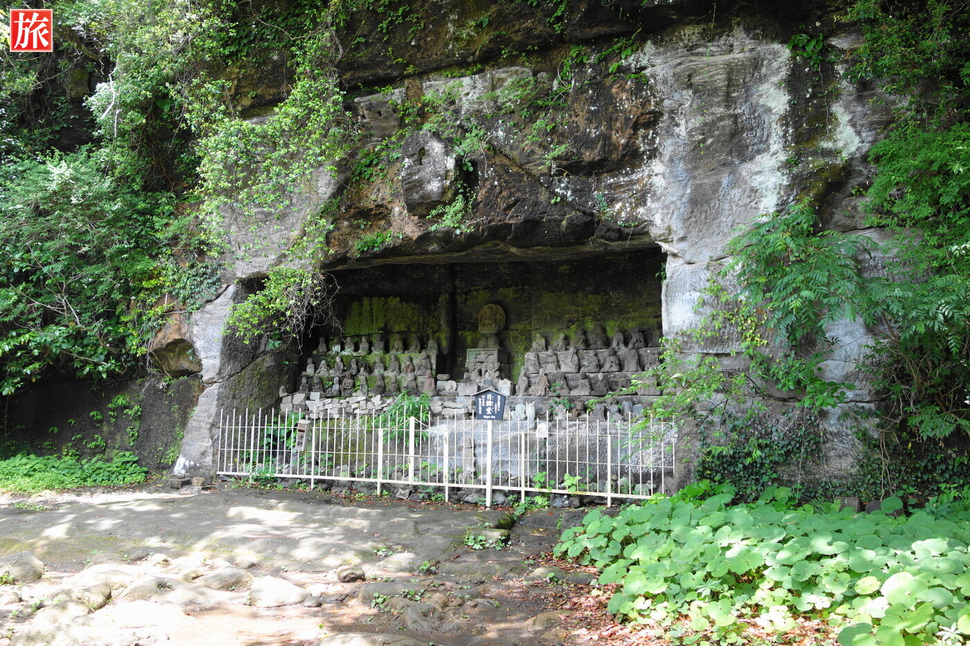 さらに続く石仏像群...全部で1553体あるらしい。寛政10年(1798)までの21年間、門弟27人と生涯をかけて、羅漢像を刻んだ大野甚五郎英令の墓。