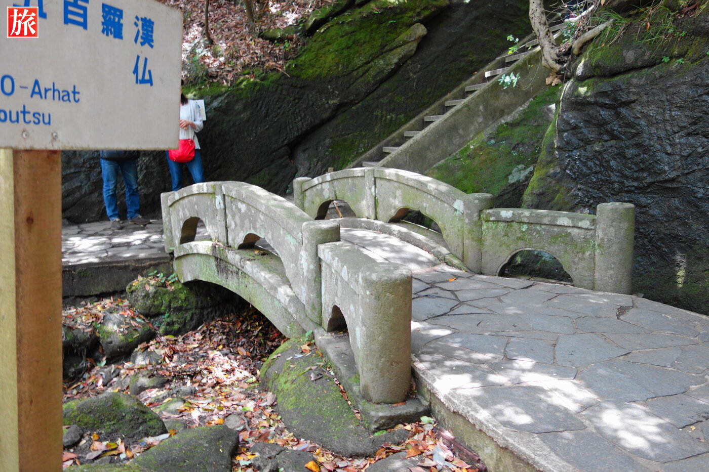 次は千五百羅漢の観光です。ここから降っていきます。西国観音。石の階段を降っていきます。