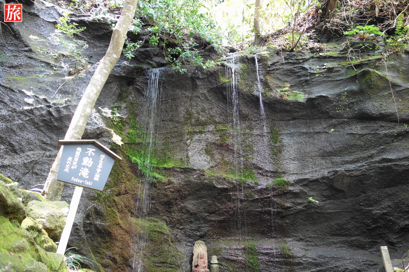石橋を渡った右手の石段の上には不動滝があります。不動滝 「茫々たる宇宙人無数、幾箇の男児が是れ丈夫」との言葉が添えられていました。 滝つぼ。