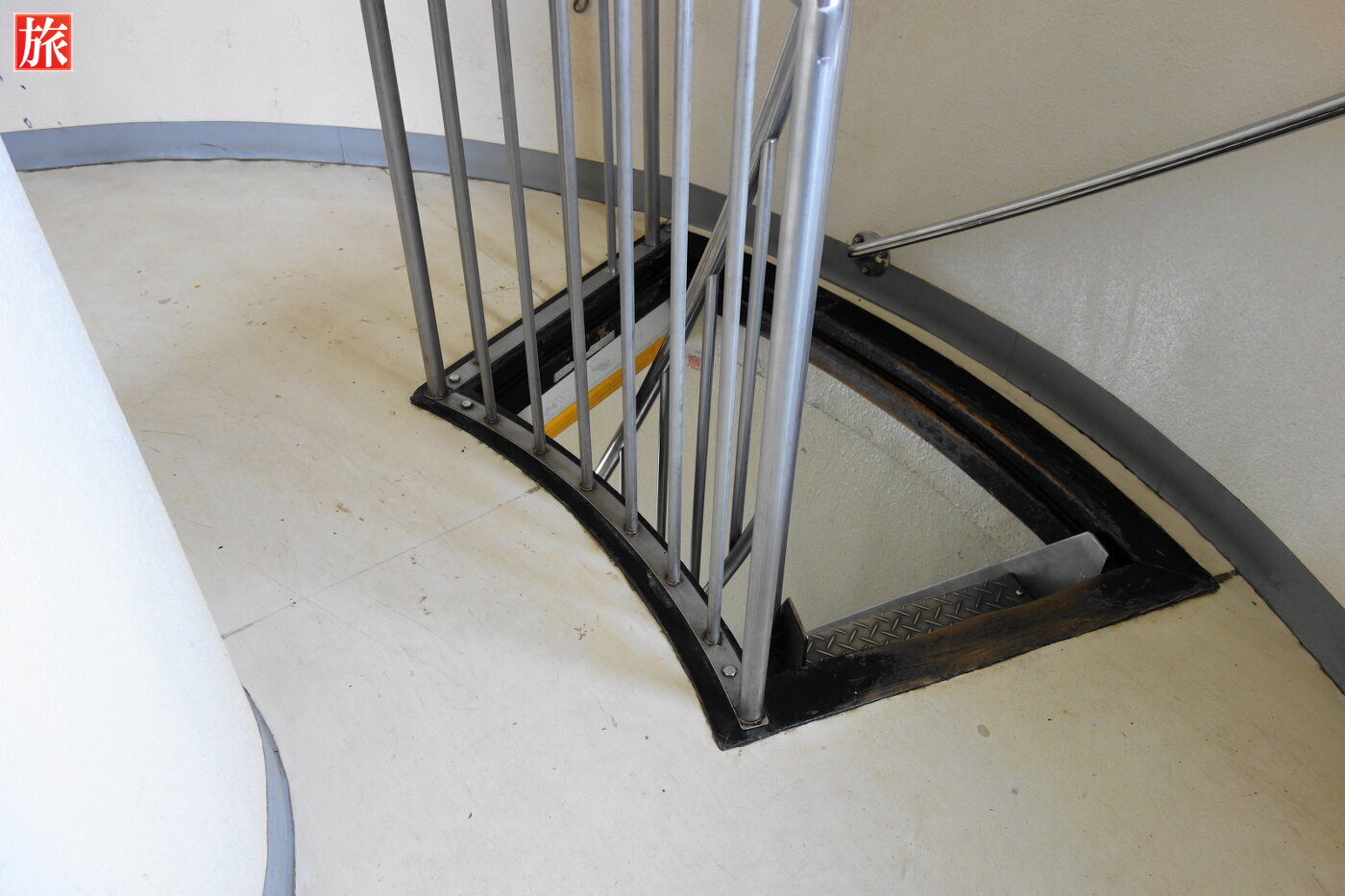 螺旋階段を登っていきます。最上部に上がる階段。一人が上るのがやっとです。
