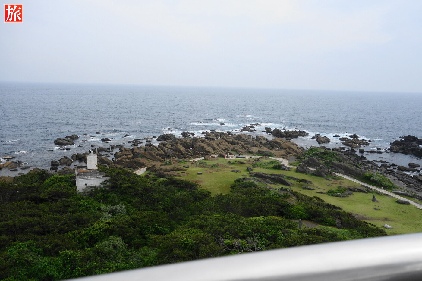 野島埼灯台からの展望風景。東の海岸方向。南の岬方向。西の海岸方向。上を見上げた様子。