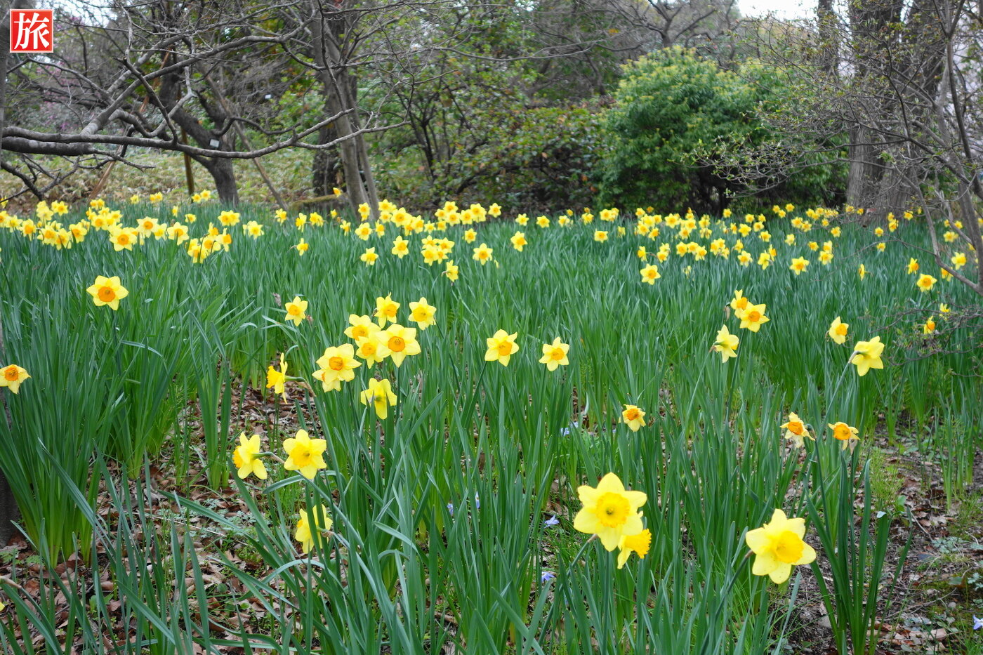 黄色い水仙が綺麗。桜と水仙のコラボ。