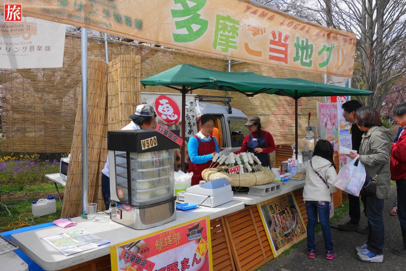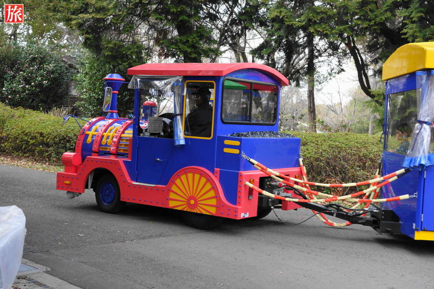 多摩ご当地グルメの出店がでていました。渓流広場レストラン前では猿まわしの芸も行われていました。園内をほぼ一周するパークトレイン。