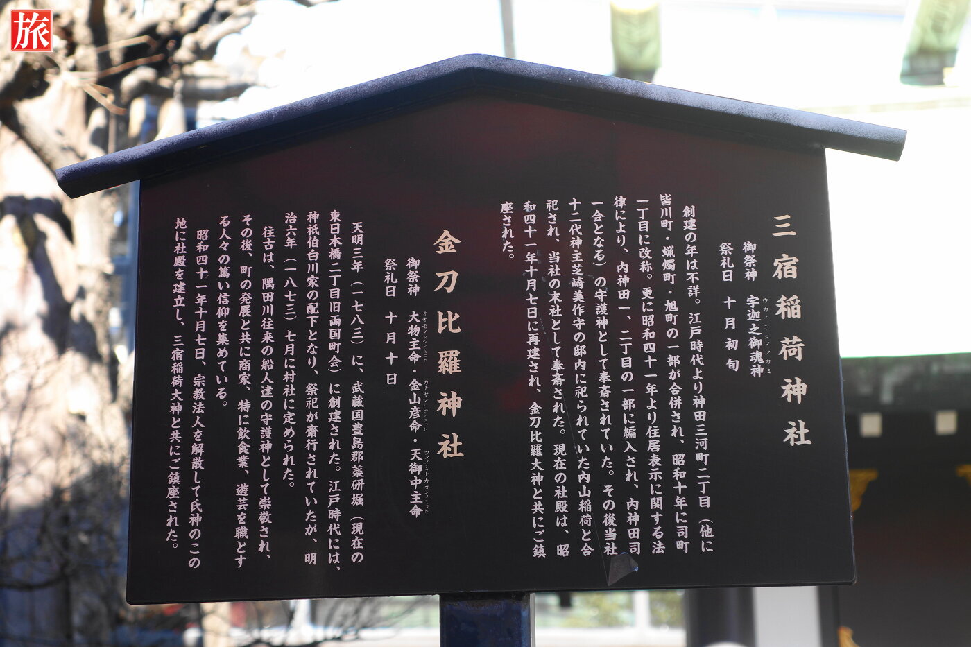 末廣稲荷神社。末広稲荷神社の説明。三宿稲荷神社・金刀比羅神社。三宿稲荷神社・金刀比羅神社の説明。
